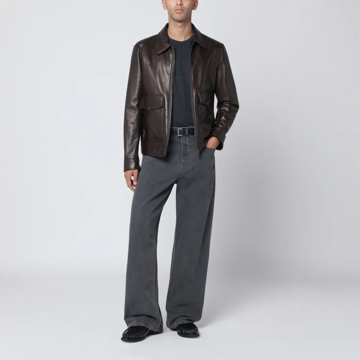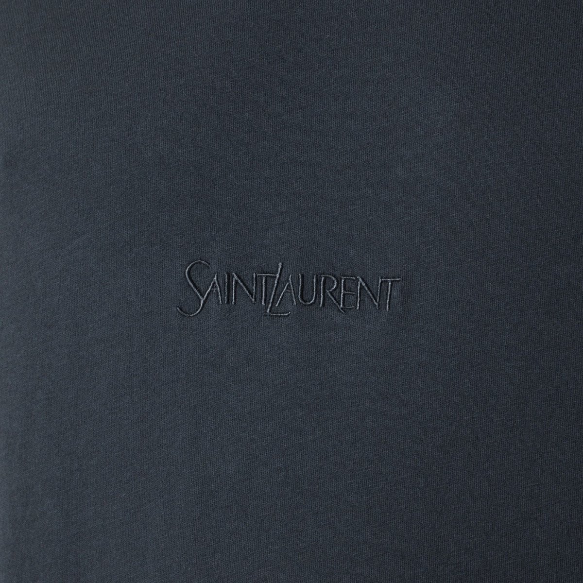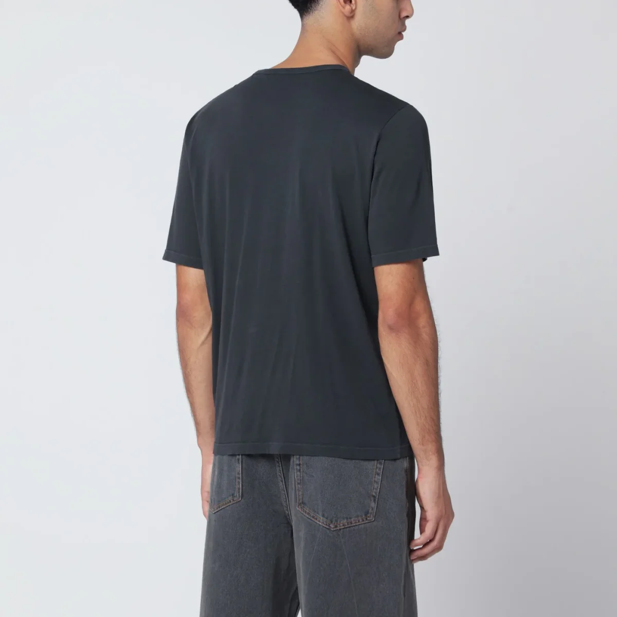 T-shirt di Saint Laurent in cotone nera slavata, caratterizzata da manica corta, ricamo logo tono su tono sul petto e girocollo a costine.