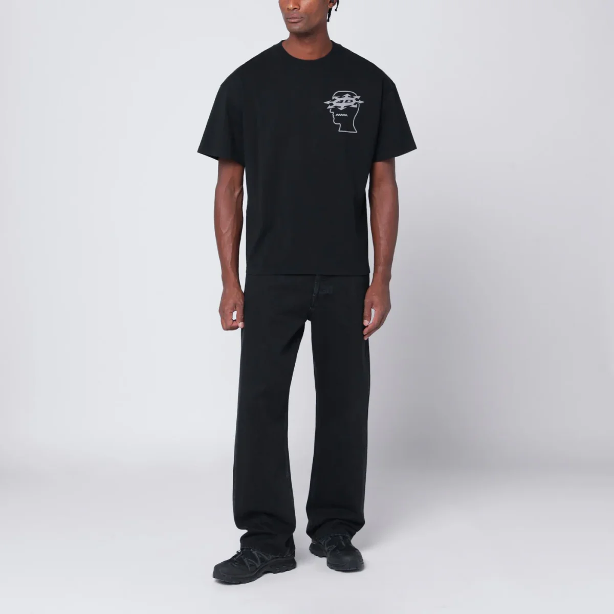 T-shirt di Brain Dead in cotone nera, caratterizzata da stampa logo sul petto e sul retro, manica corta e girocollo a costine.