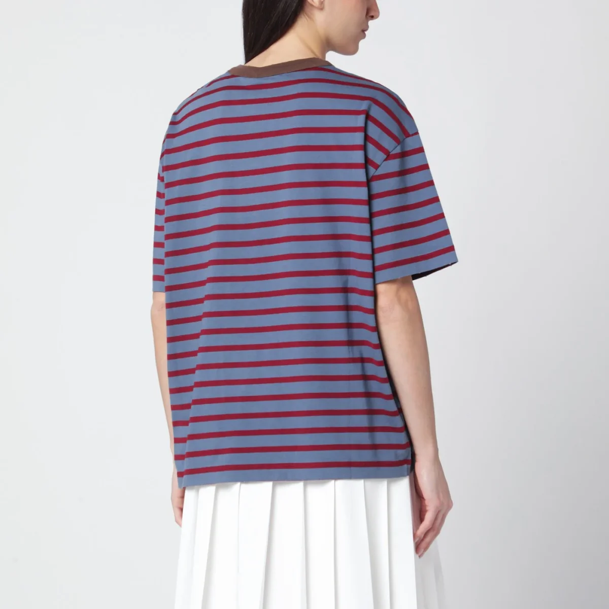 T-shirt di Prada in jersey di cotone a righe avio e amaranto