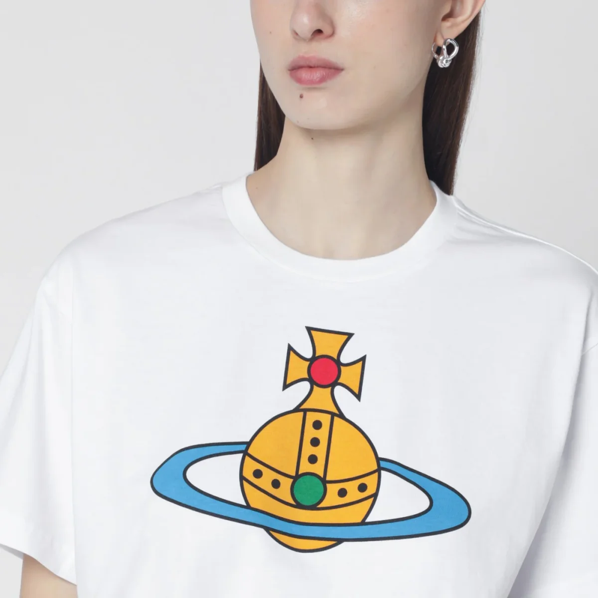 T-shirt di Vivienne Westwood in cotone bianca• girocollo a costine• maniche corte• stampa con logo Orb colorato sul davanti• vestibilità oversize
