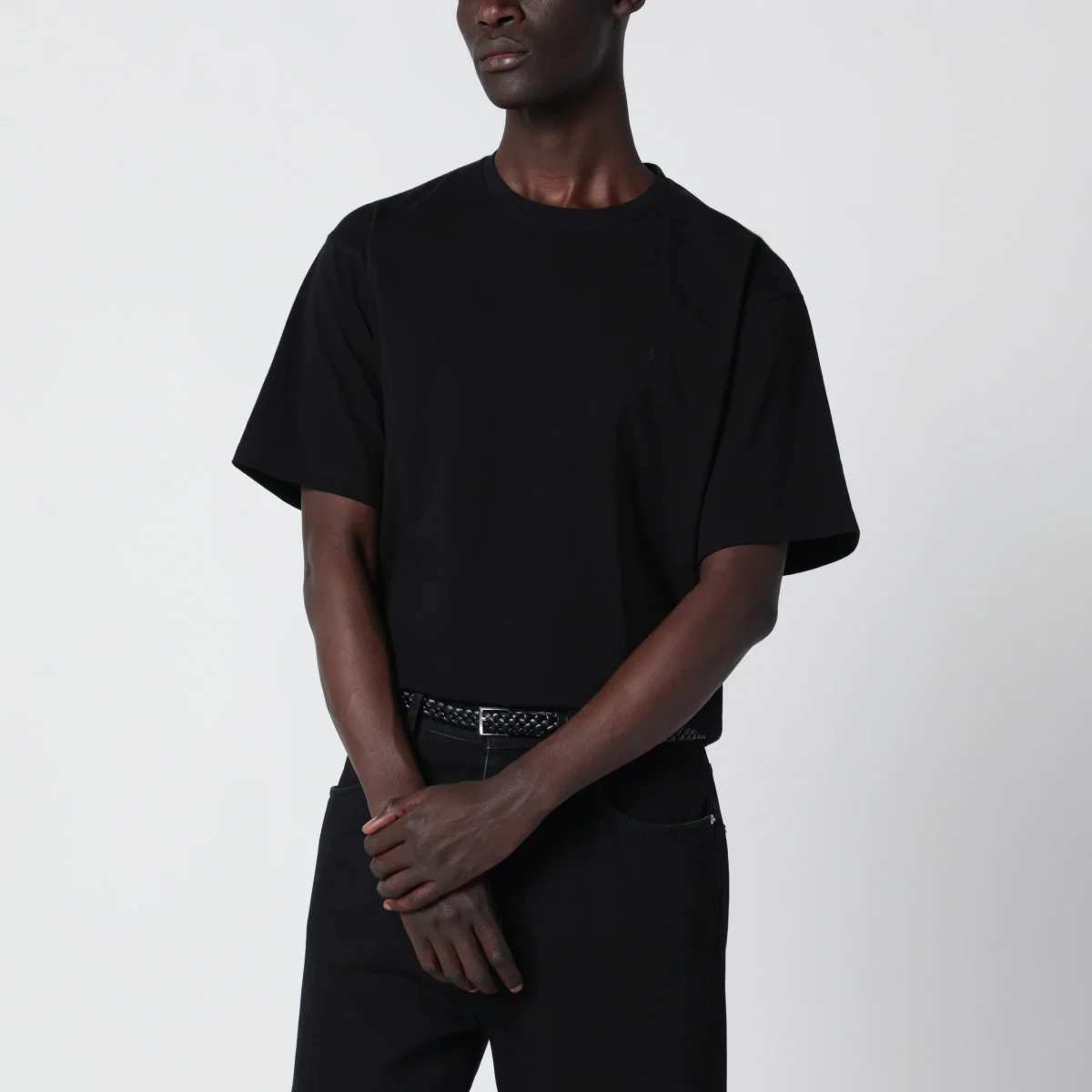T-shirt girocollo oversize in cotone biologico di Saint Laurent• Colore: Nero• Jersey in cotone certificato• Vestibilità oversize• Girocollo• Ricamo CASSANDRE tono su tono sul petto