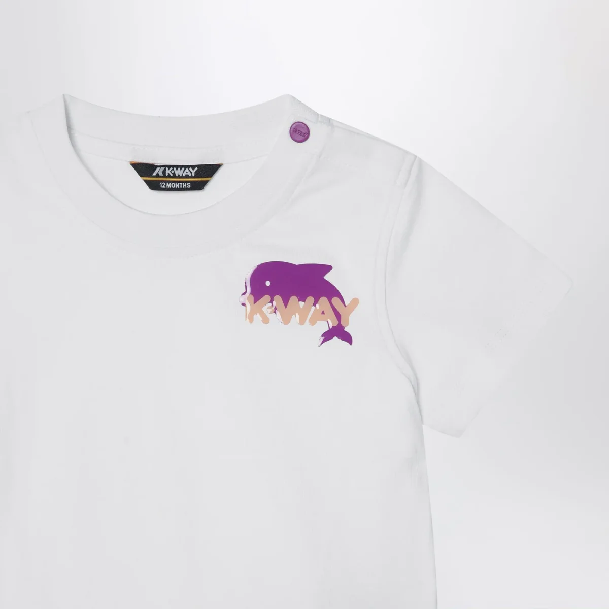 T-shirt di K-Way in jersey di cotone bianca, caratterizzata da manica corta, girocollo a costine, bottoncino sulla spalla e stampa logo sul petto.