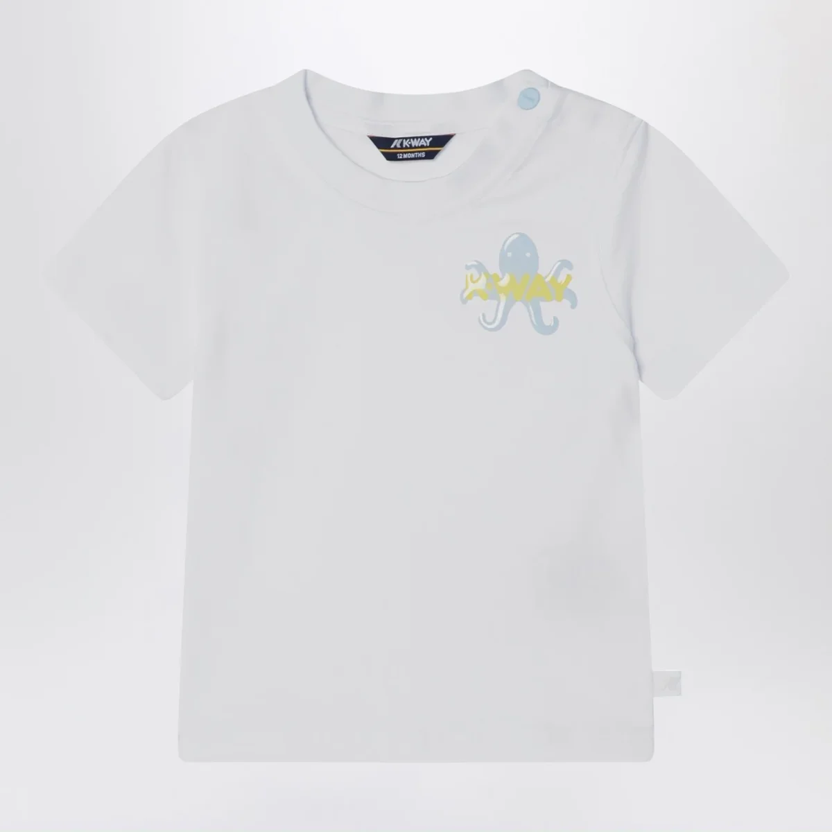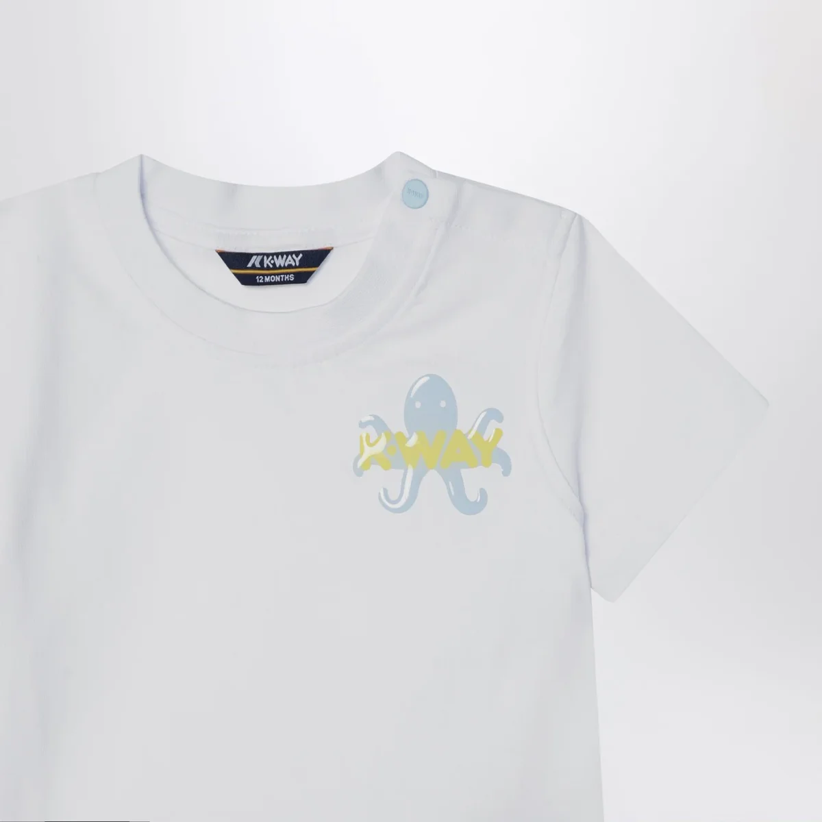 T-shirt di K-Way in jersey di cotone bianca, caratterizzata da manica corta, girocollo a costine, bottoncino sulla spalla e stampa logo sul petto.