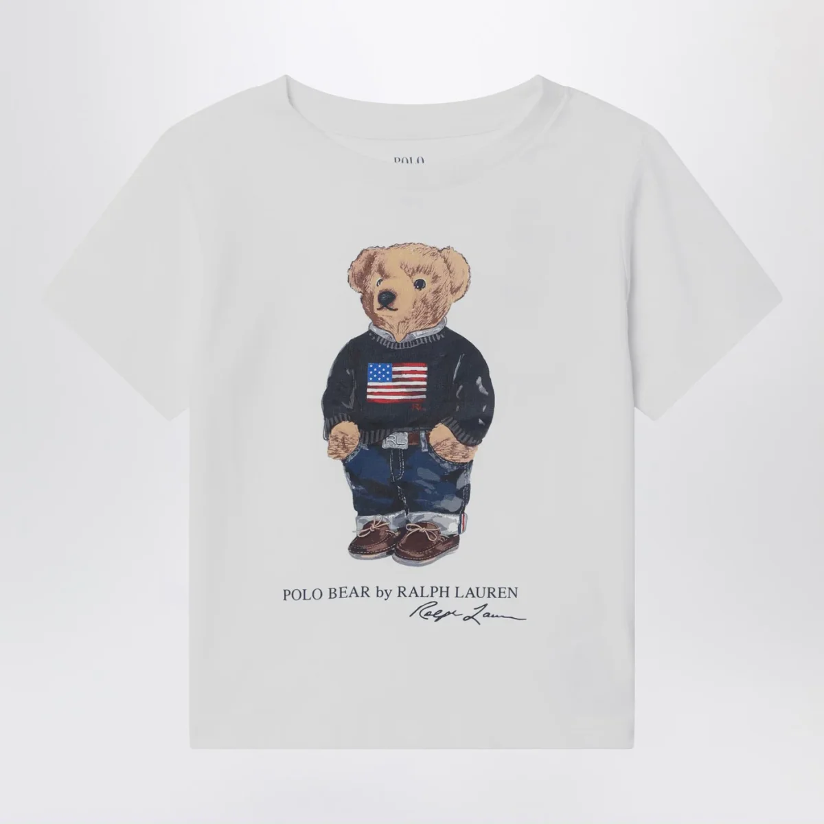 T-shirt di Polo Ralph Lauren in cotone bianca• maniche corte• stampa Polo Bear sul davanti• girocollo a costine