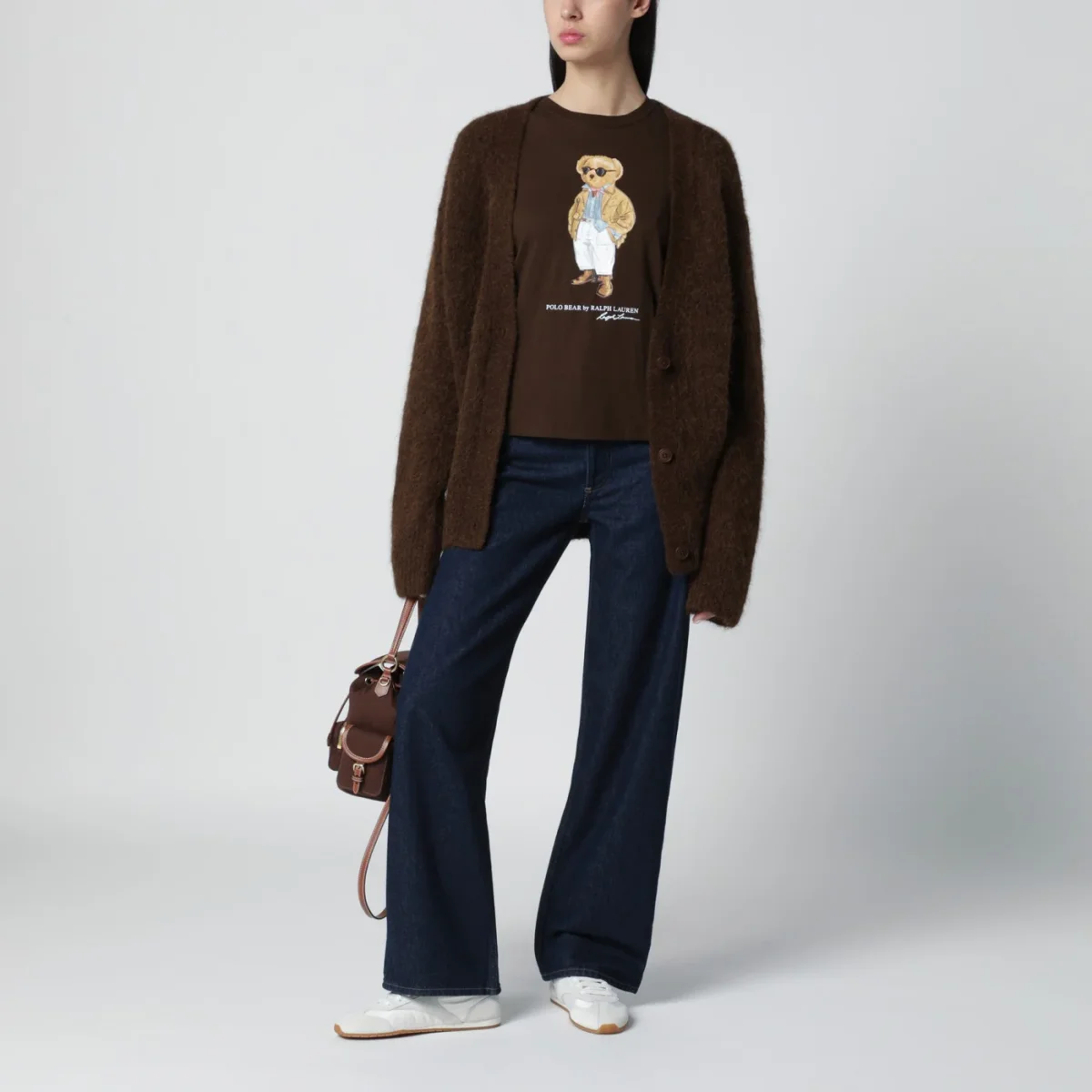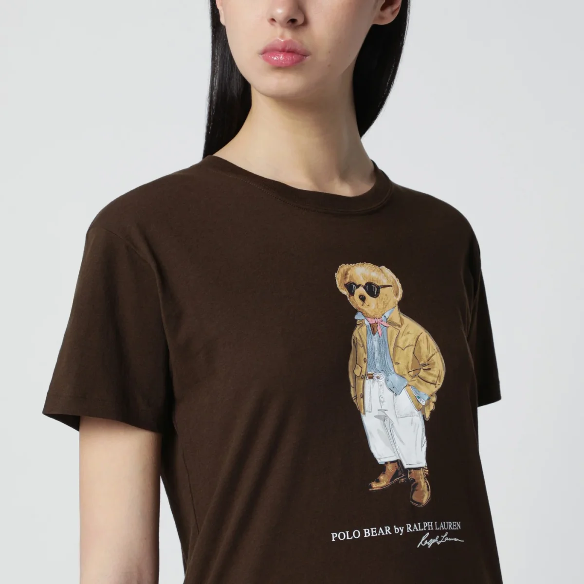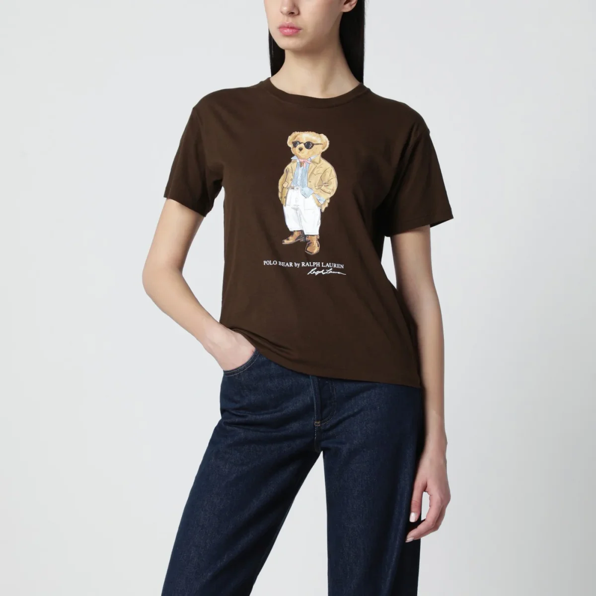 T-shirt di Polo Ralph Lauren in jersey di cotone marrone, caratterizzata da stampa Polo Bear frontale, design girocollo, maniche corte e orlo dritto.