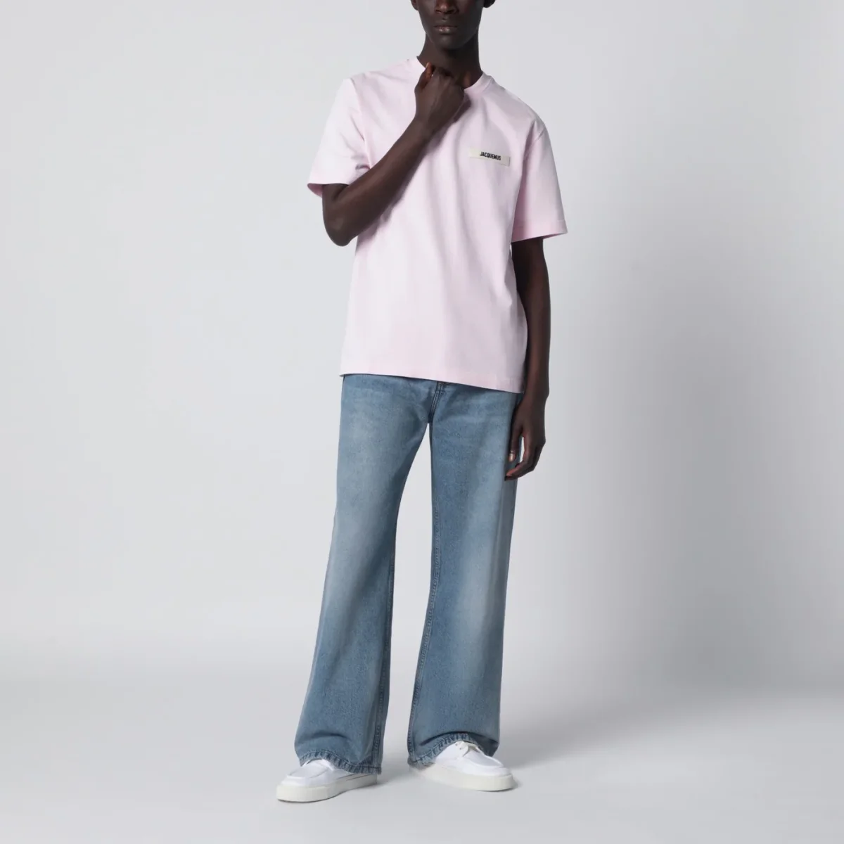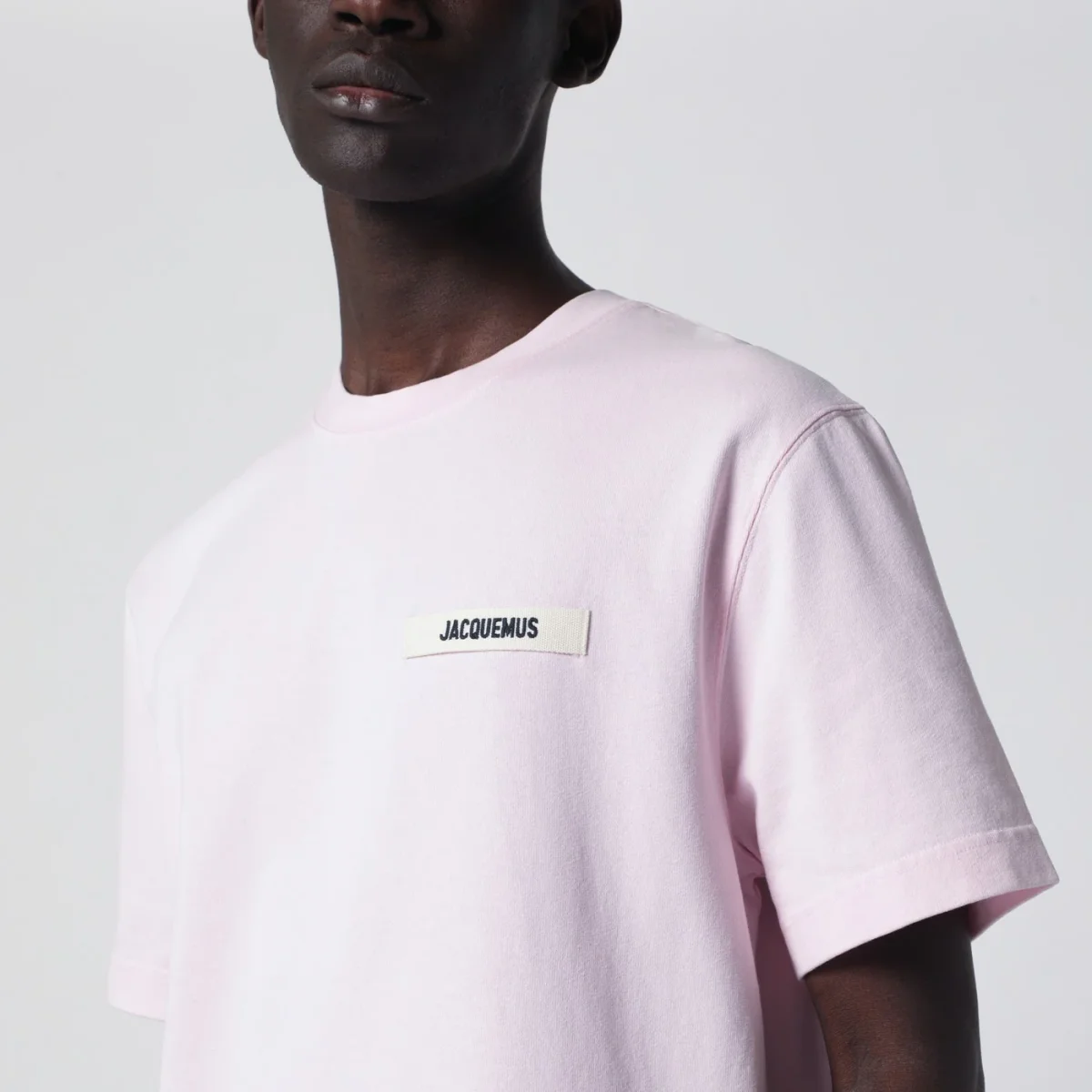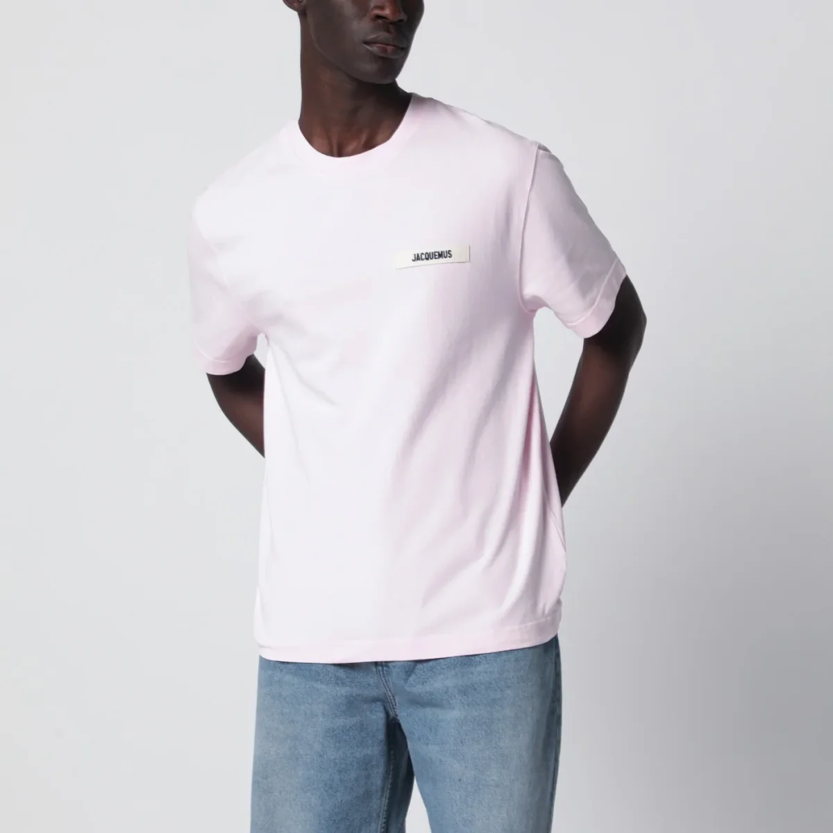 T-shirt di Jacquemus in cotone rosa• taglio morbido• girocollo a costine• maniche corte• dettaglio logo in Gros Grain sul petto