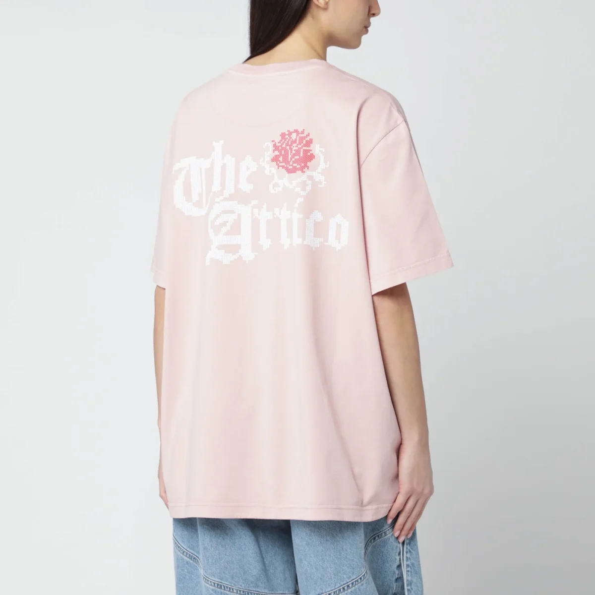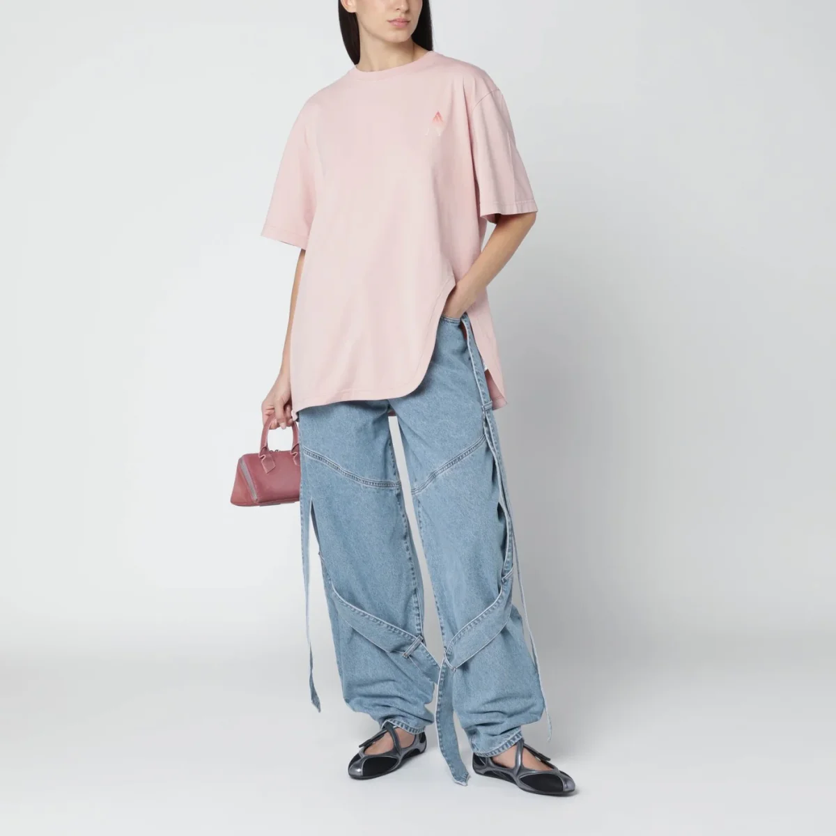 T-shirt di The Attico in cotone rosa• design girocollo• maniche corte• stampa logo sul petto• stampa sul retro•orlo sagomato