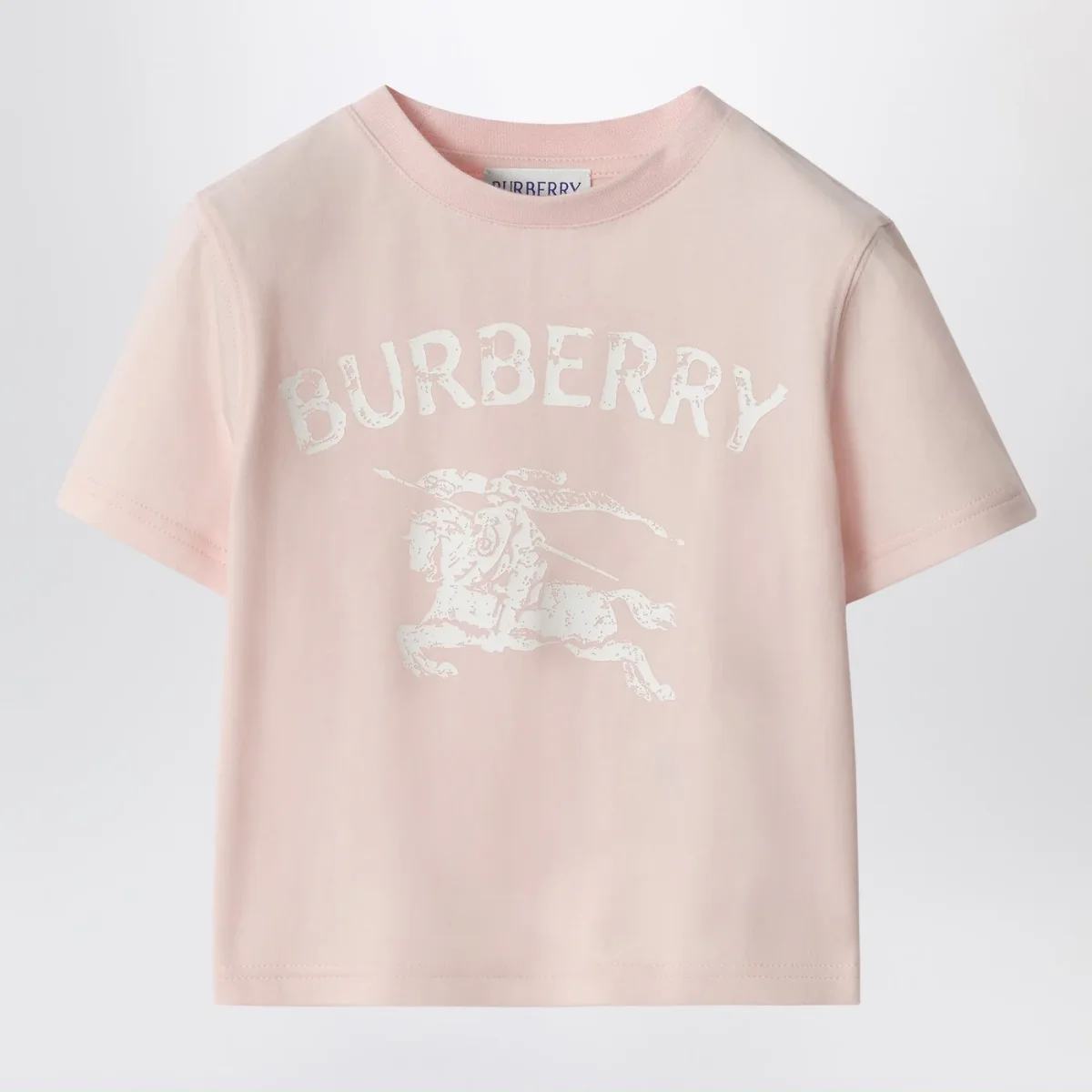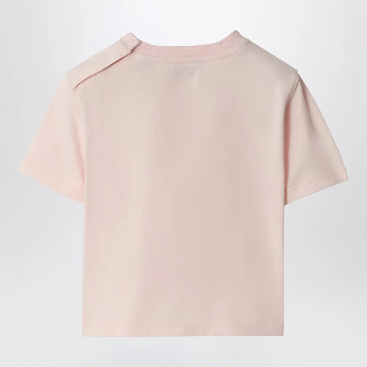T-shirt di Burberry in cotone stretch rosa• maniche corte• logo lettering ed Equestrian Knight Design stampato stile timbro sul davanti• bottoni a pressione sulla spalla• girocollo a costine