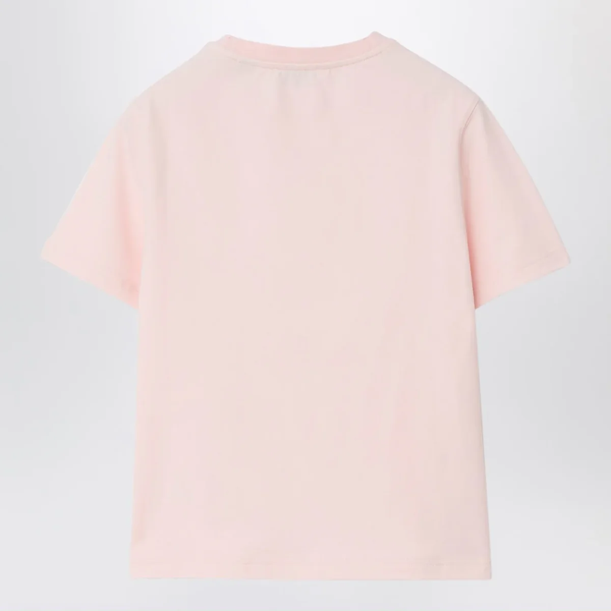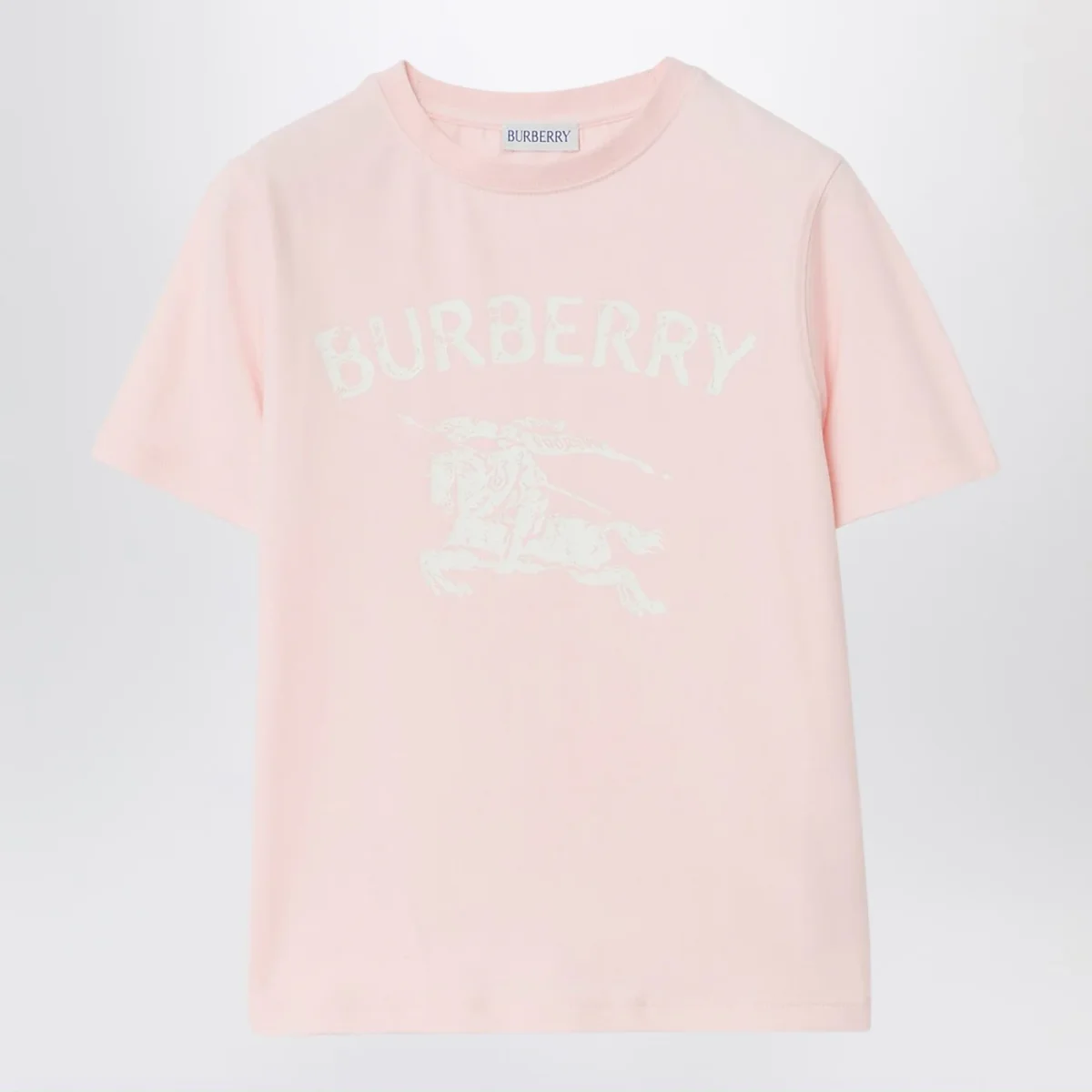 T-shirt di Burberry in cotone stretch rosa• maniche corte• logo lettering ed Equestrian Knight Design stampato stile timbro sul davanti• girocollo a costine