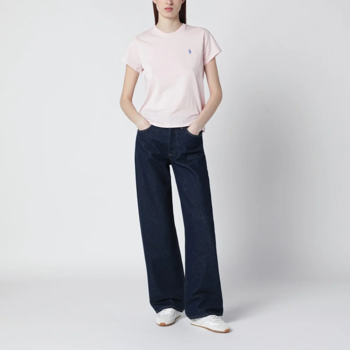 T-shirt di Polo Ralph Lauren in cotone rosa, caratterizzata da maniche corte, girocollo a costine e ricamo logo sul petto a contrasto.