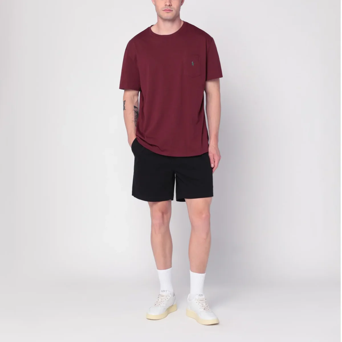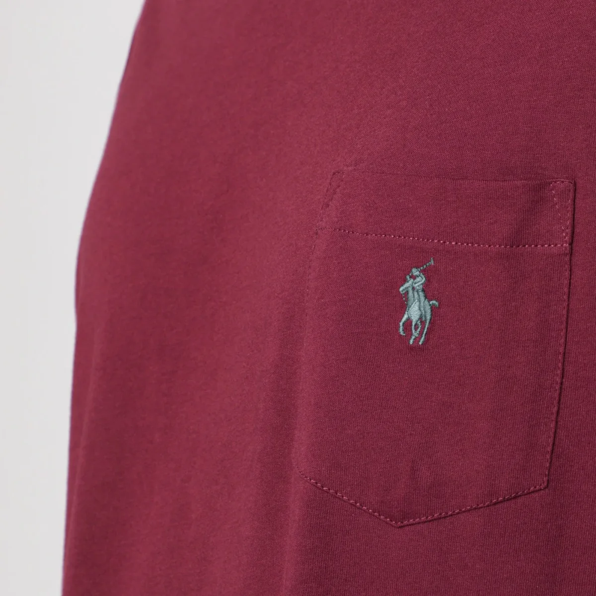 T-shirt girocollo di Polo Ralph Lauren in cotone color rosso vino, caratterizzata da maniche corte e una tasca applicata sul petto con logo ricamato.