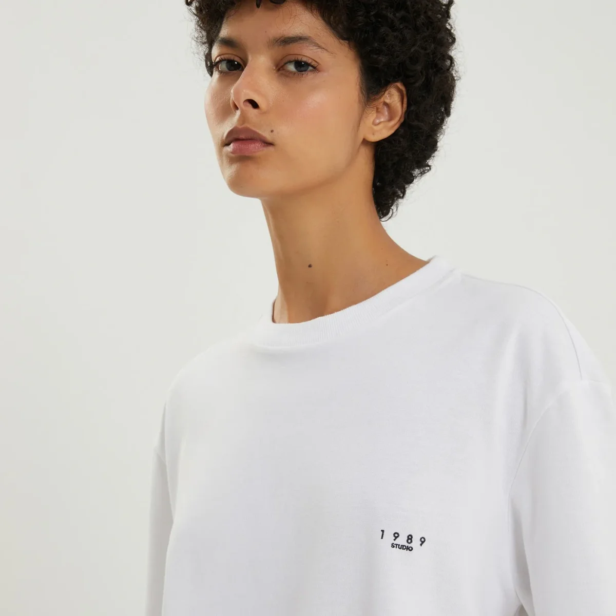 Maglietta a maniche corte con scollo rotondo di 1989 Studio con logo ricamato a contrasto sul petto, maniche corte e orlo dritto.