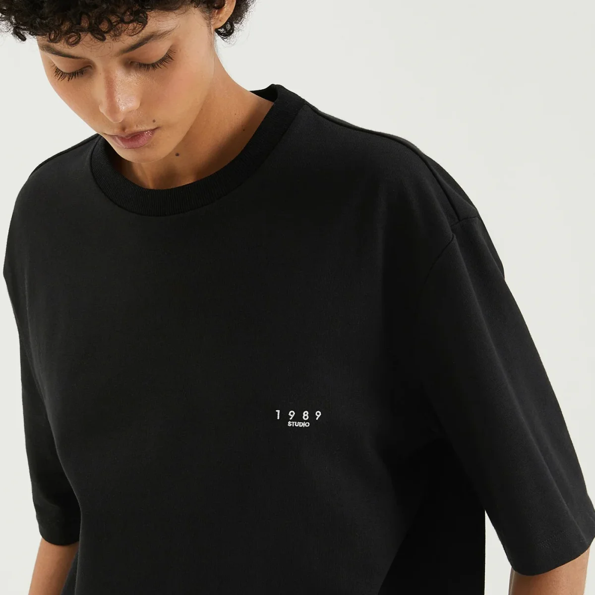 Maglietta a maniche corte con scollo rotondo di 1989 Studio con logo ricamato a contrasto sul petto, maniche corte e orlo dritto.