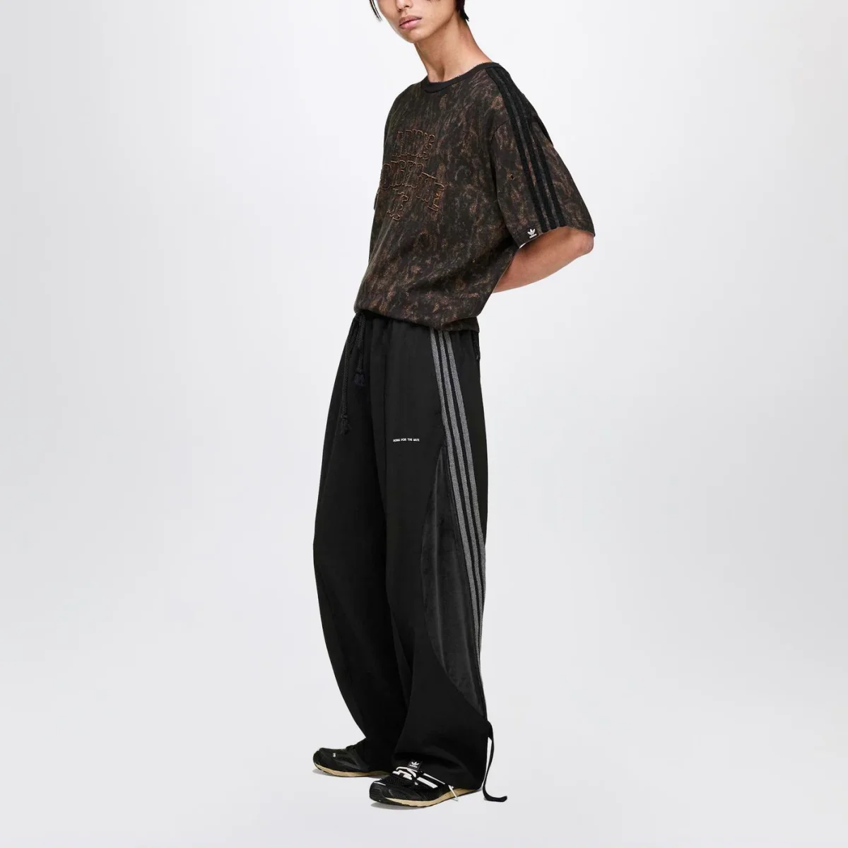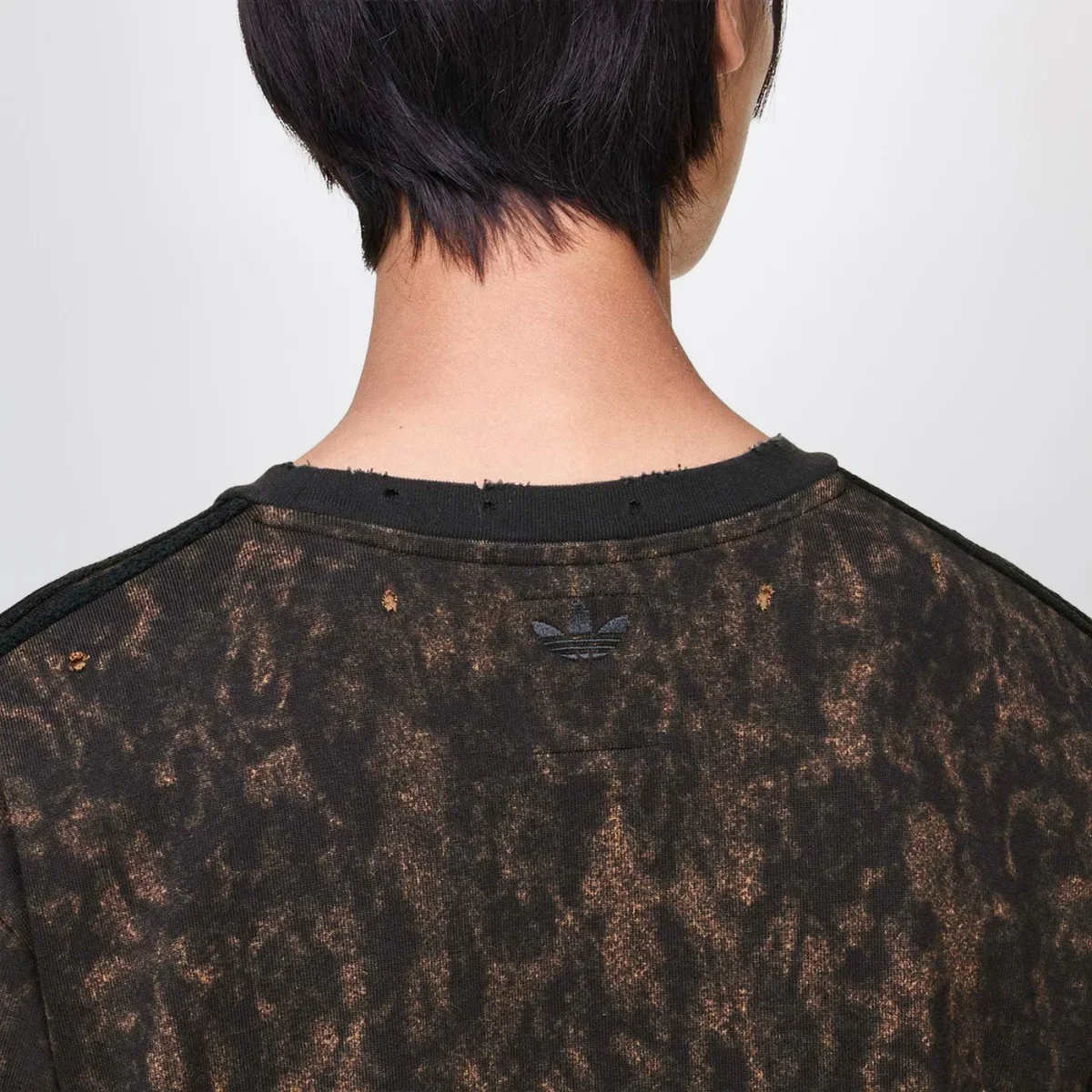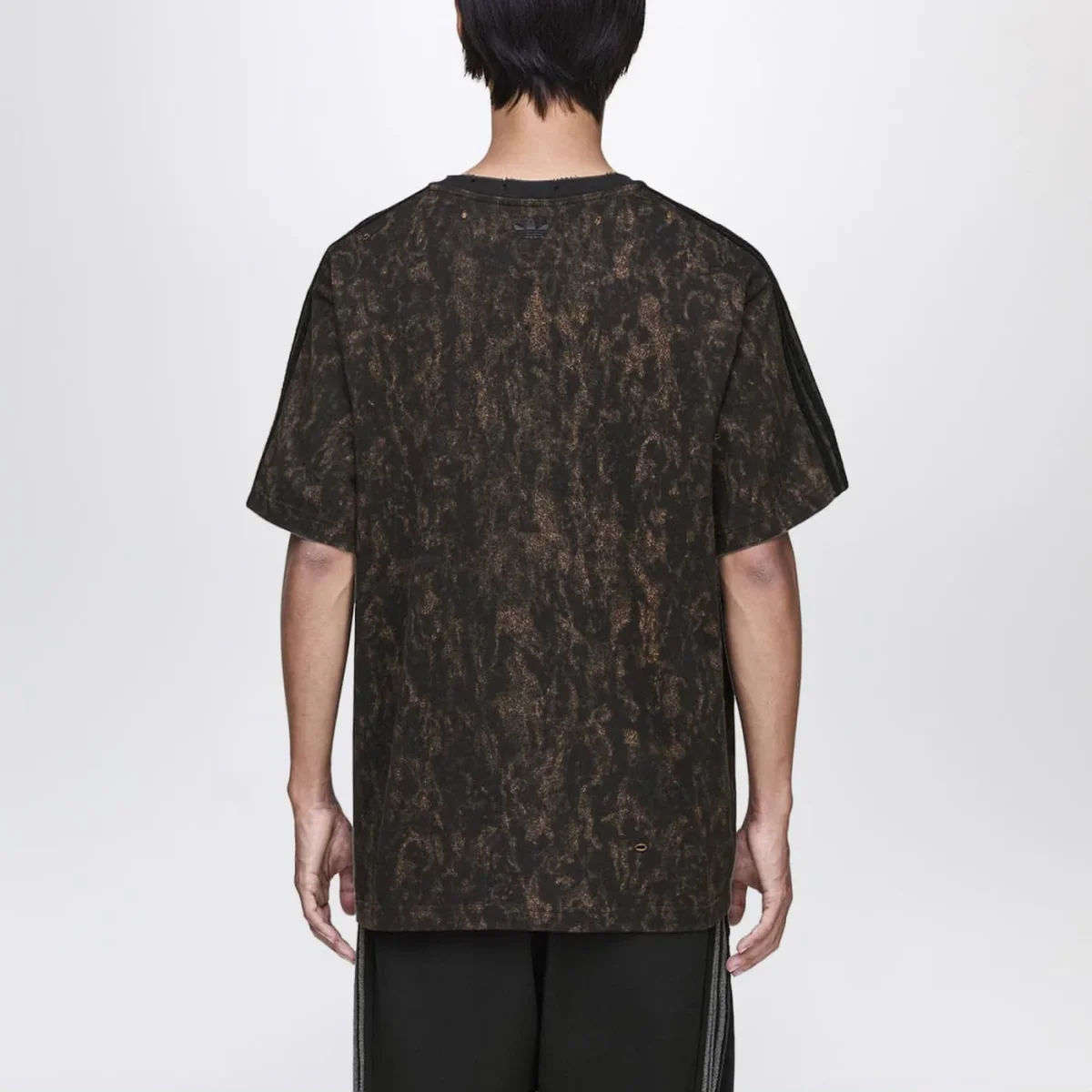 T-shirt girocollo di adidas Statement in collaborazione con Song For The Mute in cotone marrone e nera, caratterizzata da dettagli usurati effetto vintage, vestibilità oversize, logo ricamato sul davanti e 3 strisce su spalle e maniche.
