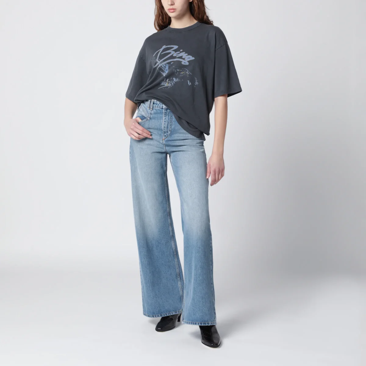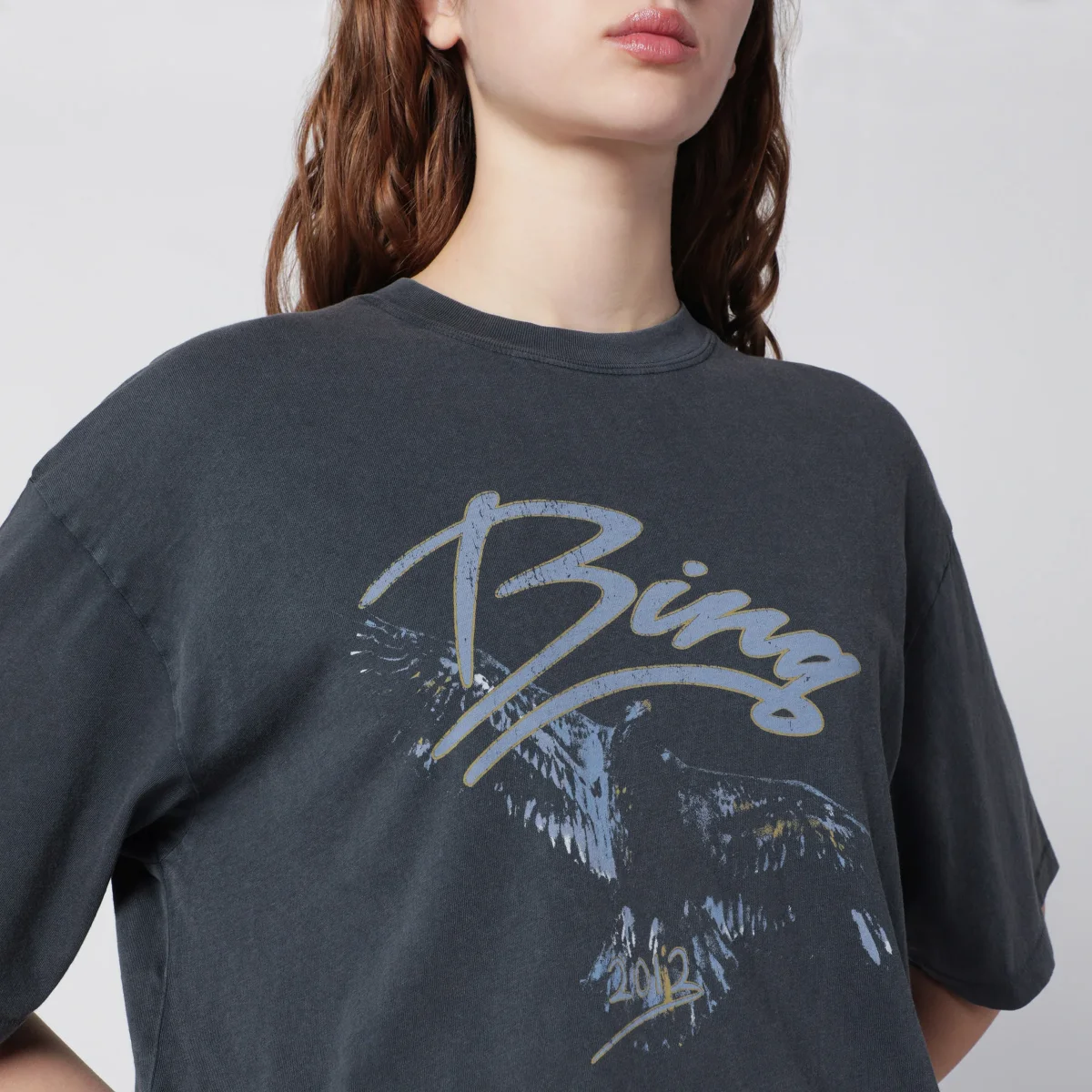 T-shirt di Anine Bing in cotone• Colore: Washed Black• Design girocollo• Stampa Spencer Eagle frontale• Maniche corte