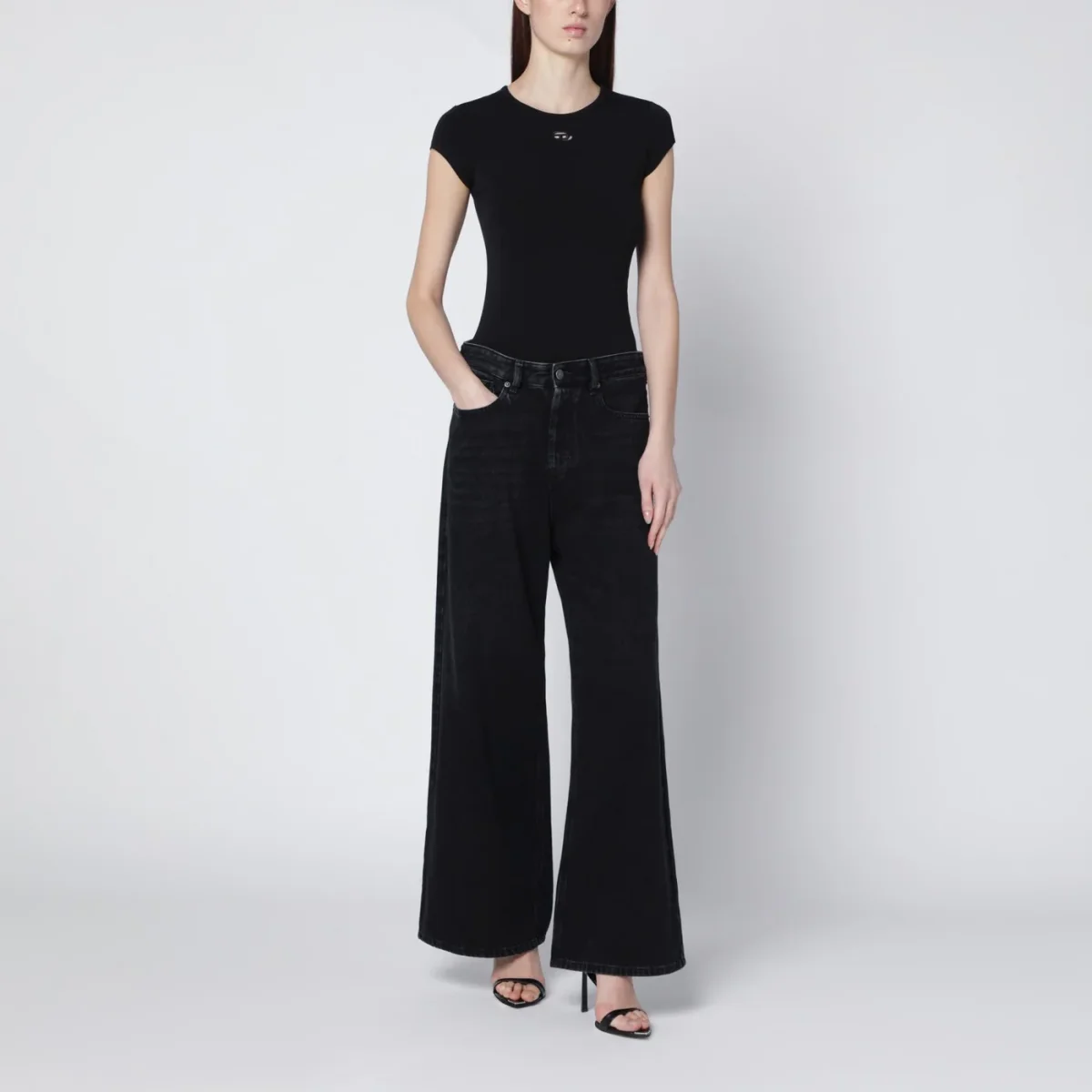 T-shirt T-Angie nera con Oval D laser-cut