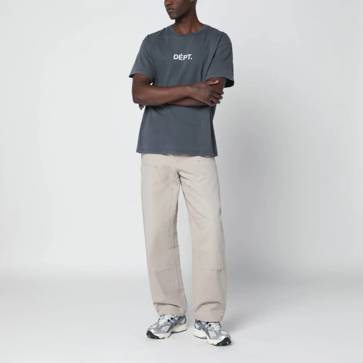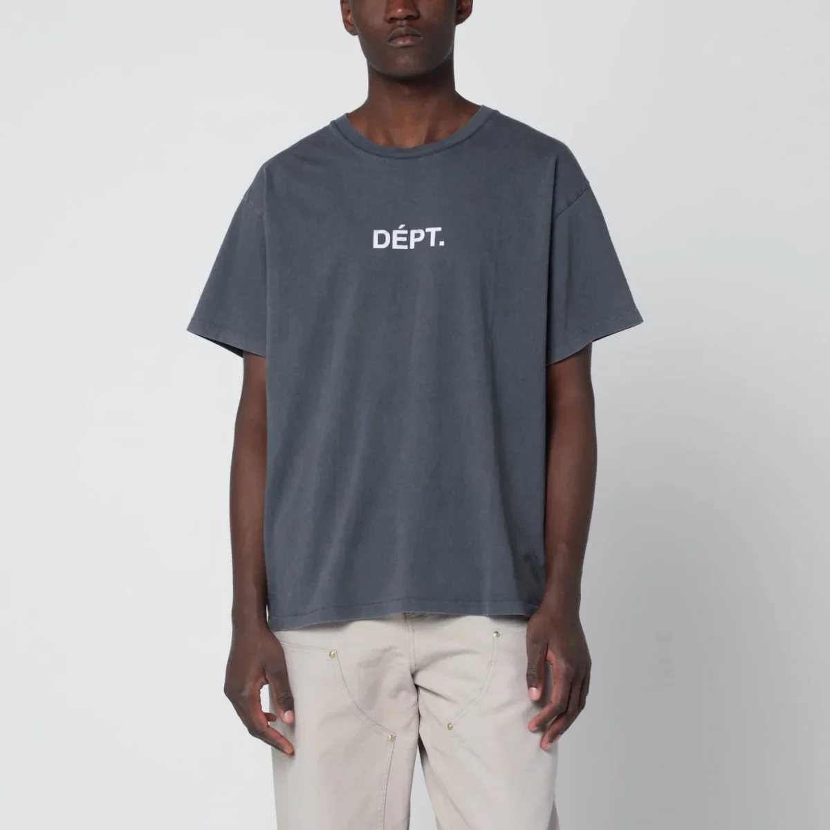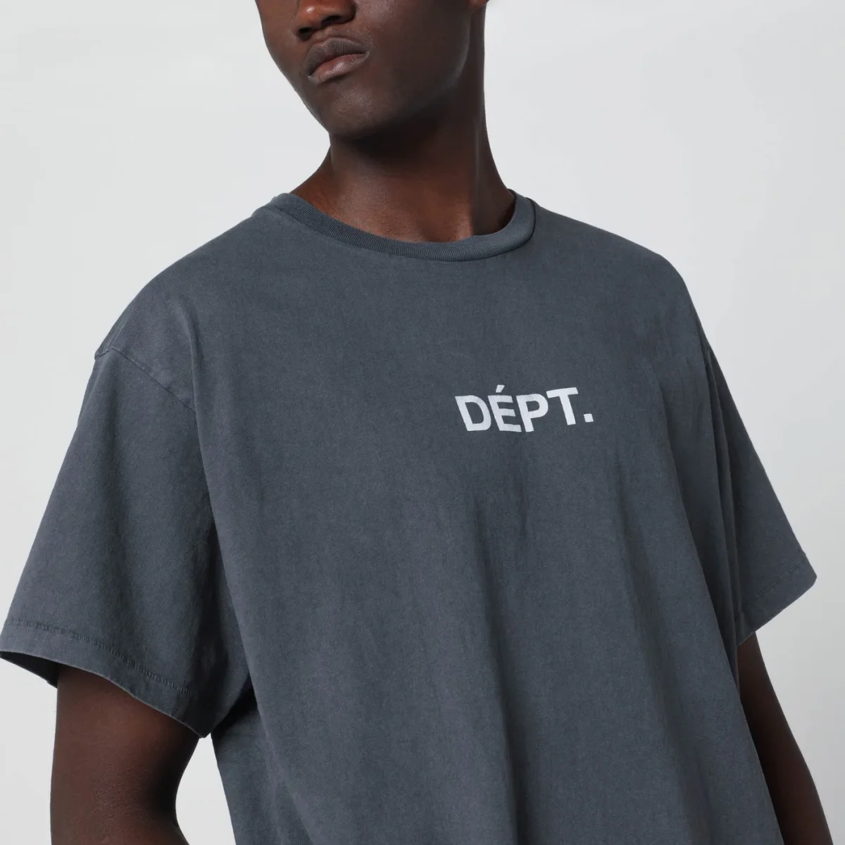 T-shirt di Gallery Dept. in cotone nera effetto vintage, caratterizzata da maniche corte, taglio boxy, logo lettering effetto sbiadito a contrasto sul petto e stampa Sport Elegant a contrasto sul retro.