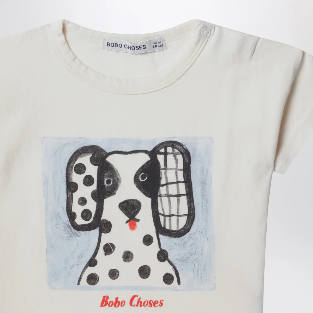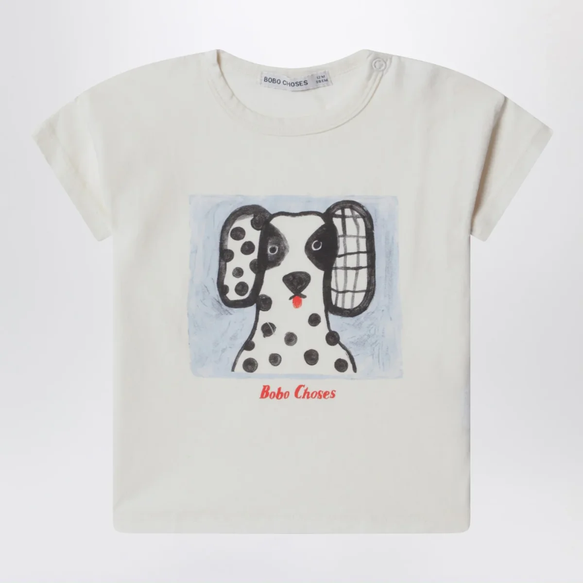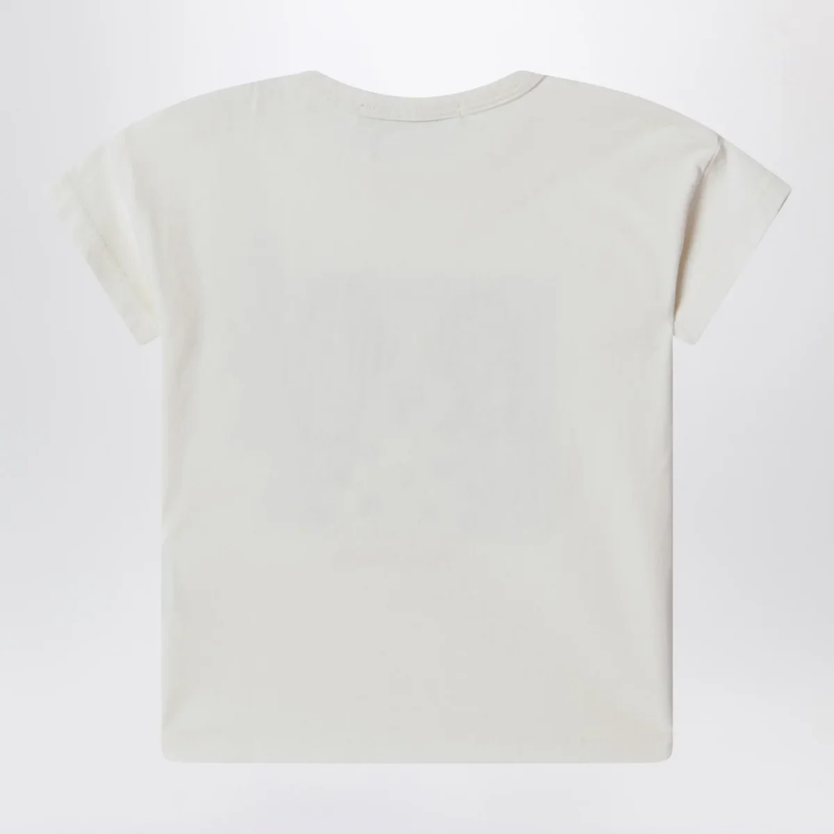 T-shirt di Bobo Choses in cotone bianca• maniche corte• spalle scese• chiusura con bottone automatico sulla spalla• vestibilità ampia• scollo rotondo
