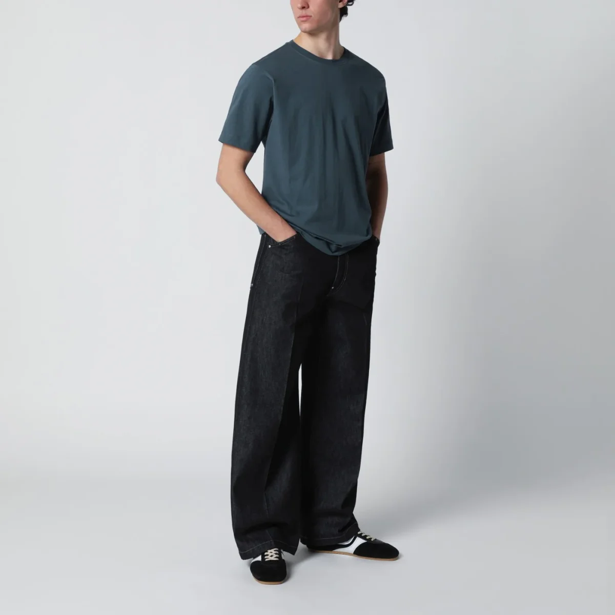 T-shirt di Dries Van Noten in cotone verde petrolio• Maniche corte• Girocollo a costine