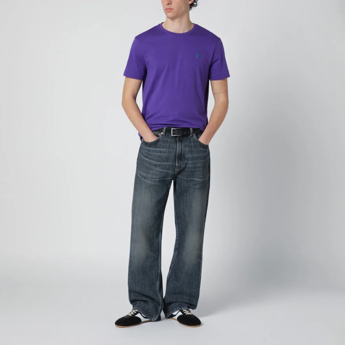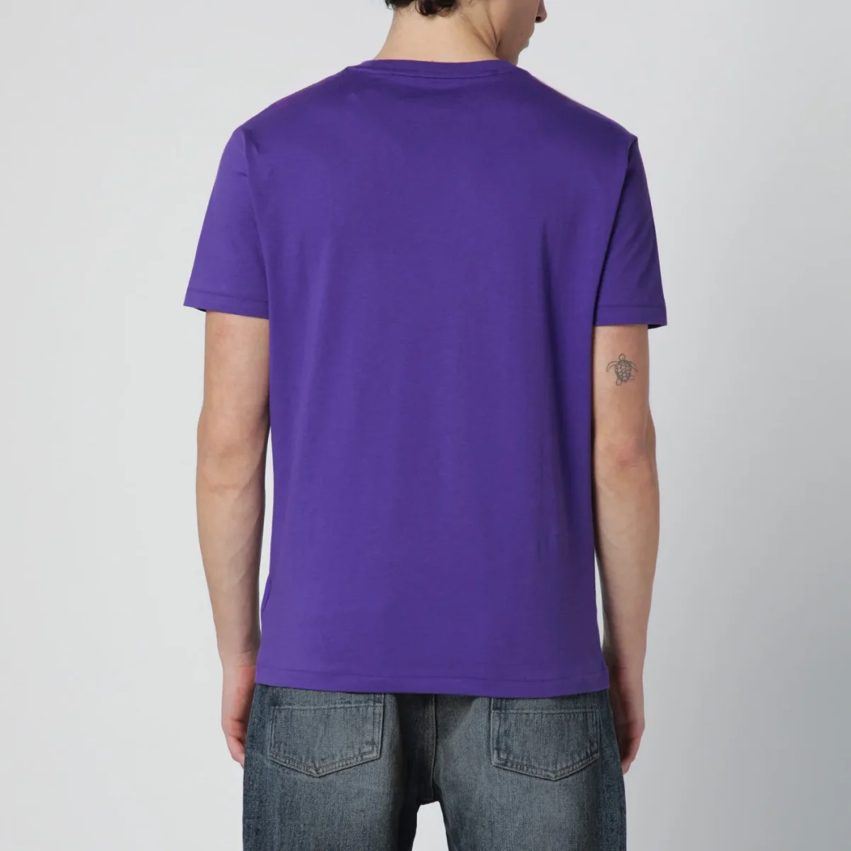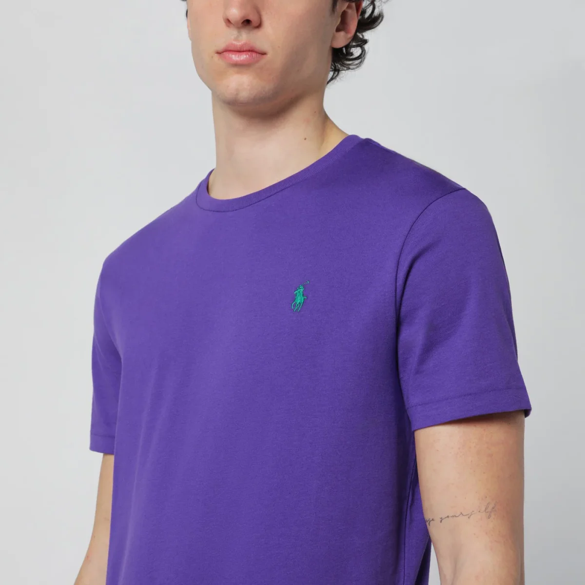 T-shirt di Polo Ralph Lauren in cotone viola, caratterizzata da logo ricamato sul petto, girocollo a costine e manica corta.