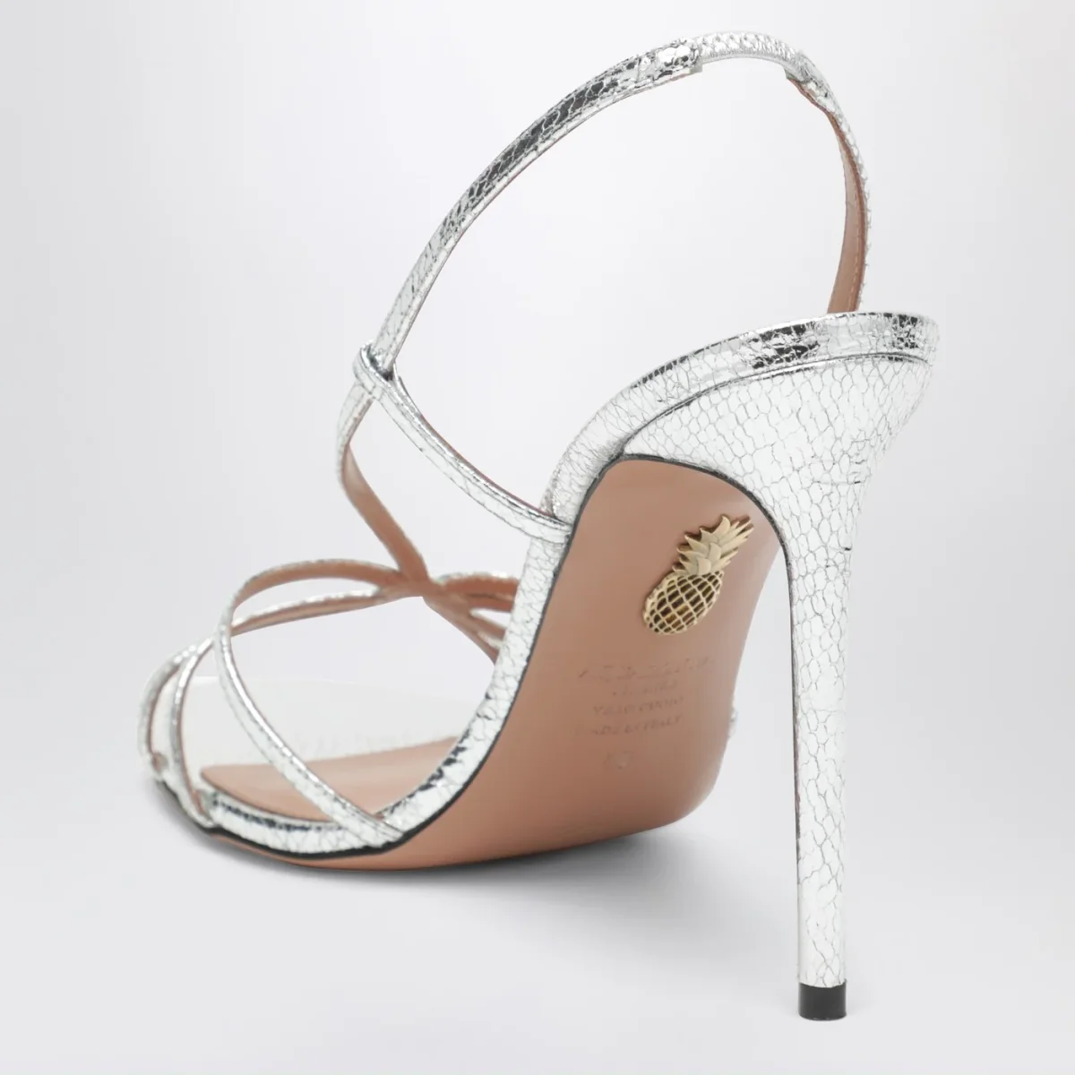 Sandali di Aquazzura in pelle argento con stampa snake• cinturino slingback• tacco stiletto• sottopiede in pelle imbottito con logo• suola in pelle