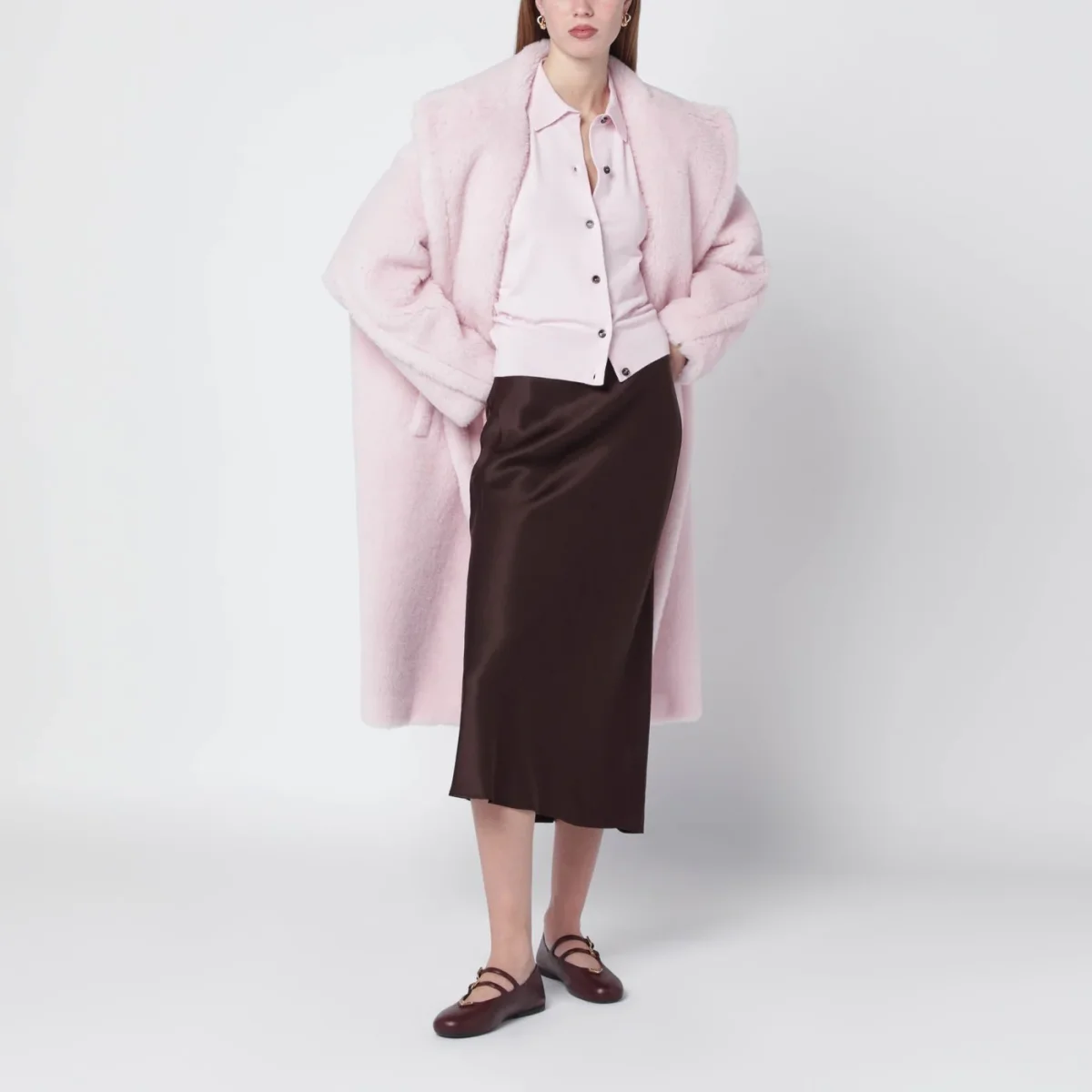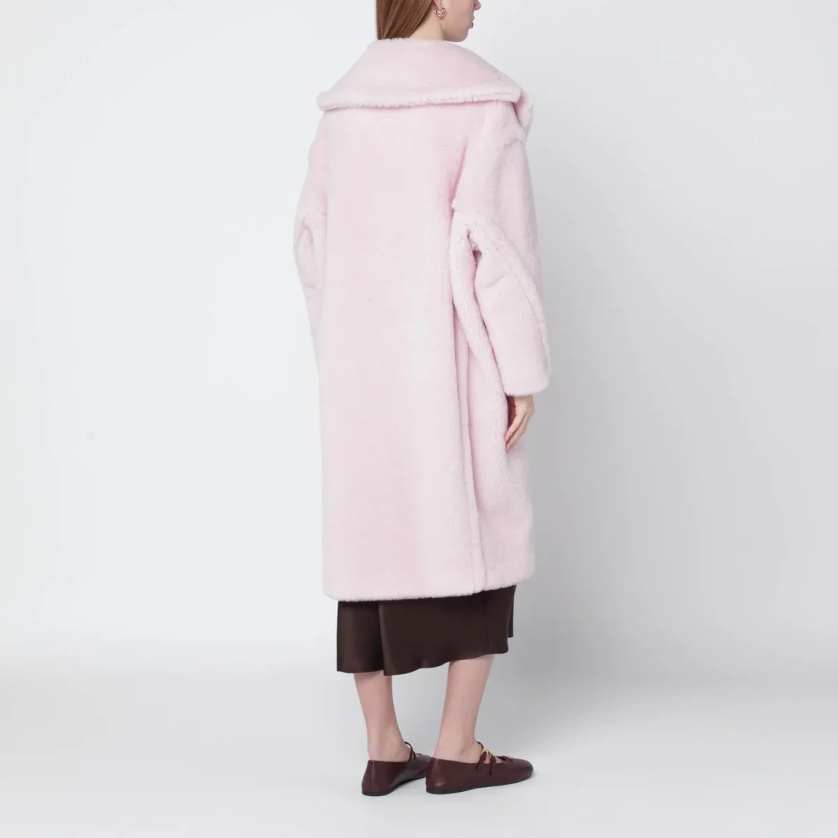 Cappotto Teddy di Max Mara in alpaca e lana su base di seta rosa chiaro