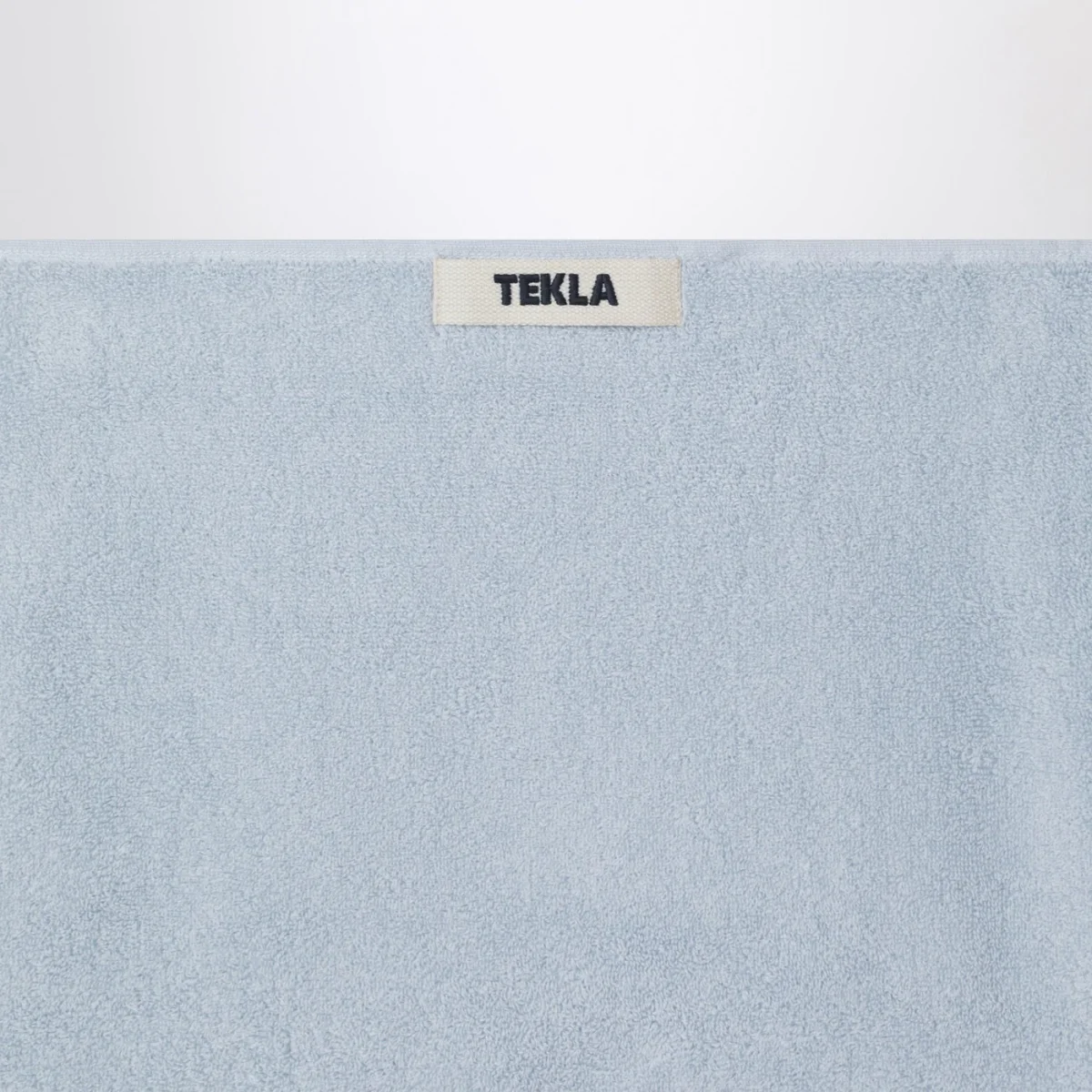 Telo bagno di Tekla in spugna di cotone marrone rossastro a righe sottili bianche, caratterizzato da anello per appendere e patch logo lettering sul lato.