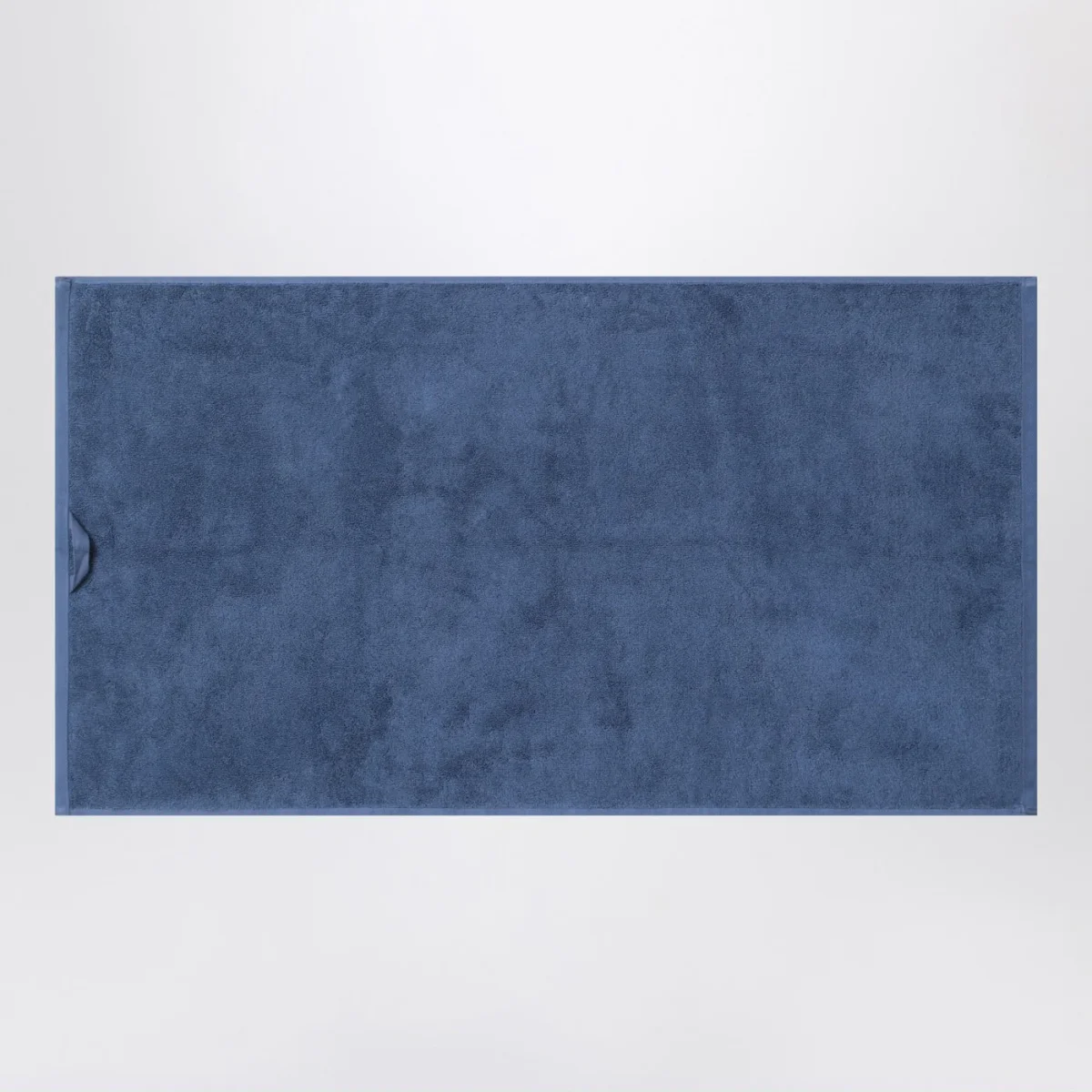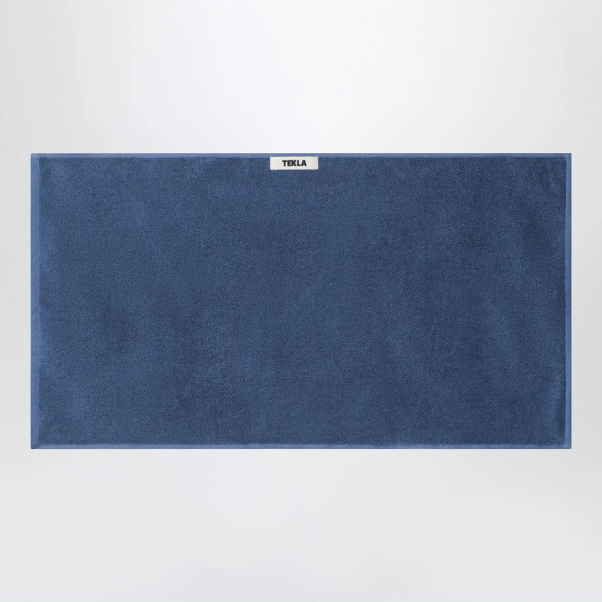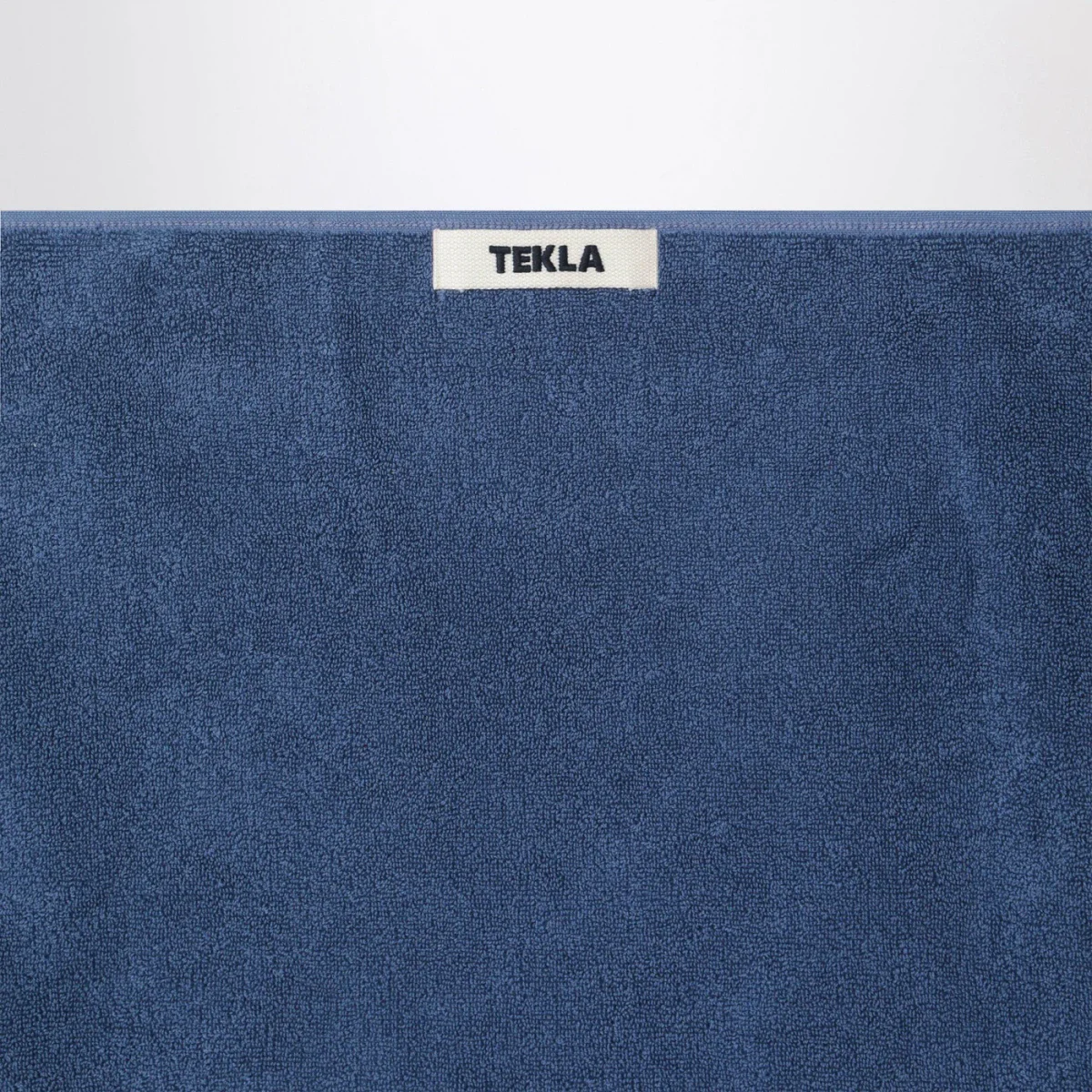 Telo bagno di Tekla in spugna di cotone blu, caratterizzato da anello per appendere e patch logo lettering sul lato.