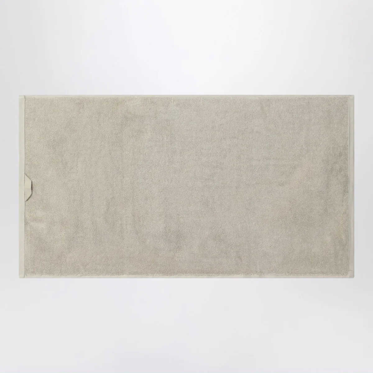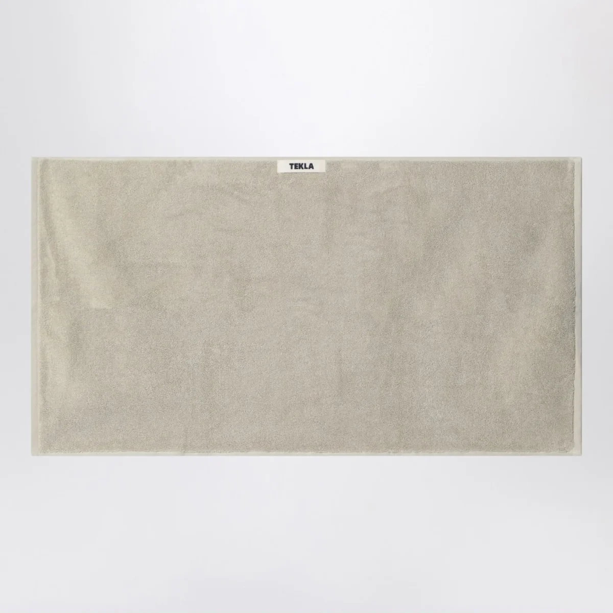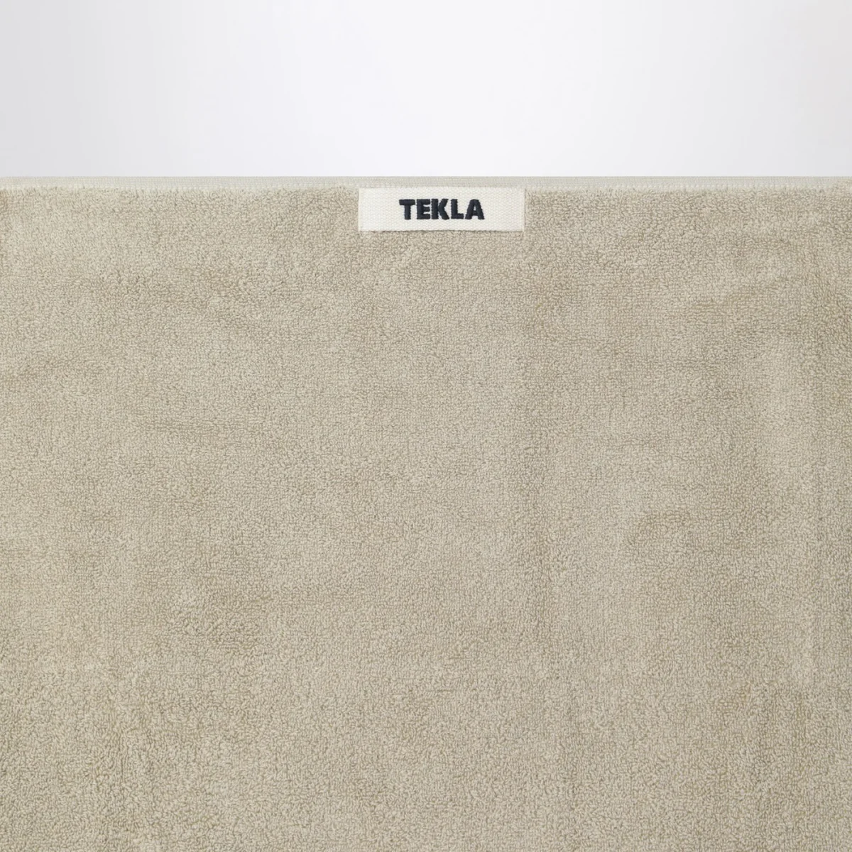 Telo bagno di Tekla in spugna di cotone greige, caratterizzato da anello per appendere e patch logo lettering sul lato.