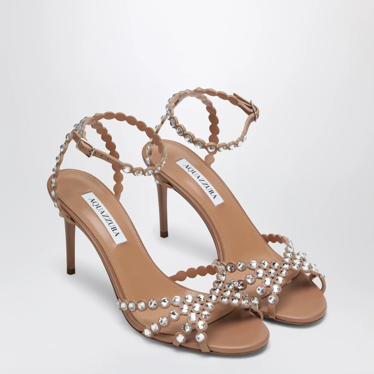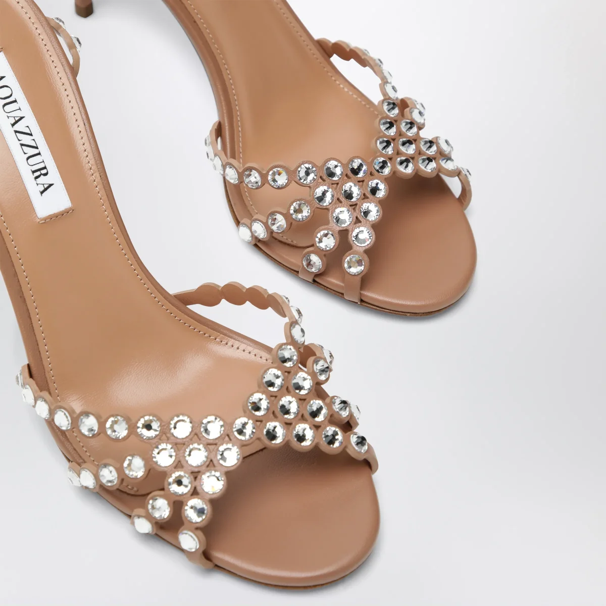 Sandali di Aquazzura in pelle con pietre luccicanti• Colore: Cipria• Tacco a stiletto rivestito• Fodera in pelle• Sottopiede in pelle imbottito• Suola in cuoio con logo Ananas placcato in oro