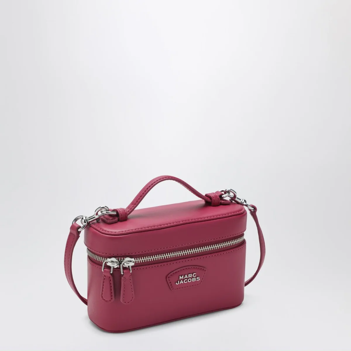 Vanity Bag di Marc Jacobs in pelle liscia rosa fucsia• chiusura con doppia zip• un manico superiore• tracolla in pelle rimovibile e regolabile• hardware in metallo color argento• patch con logo lettering in metallo sul davanti