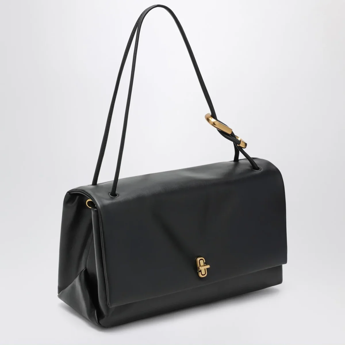 Borsa di Marc Jacobs in pelle liscia nera• patta con chiusura a girello con logo lettering• un manico superiore con dettaglio logo J intrecciate• una tasca interna con zip• fodera in nappa a contrasto• logo lettering goffrato sul retro a contrasto• hardware in metallo dorato