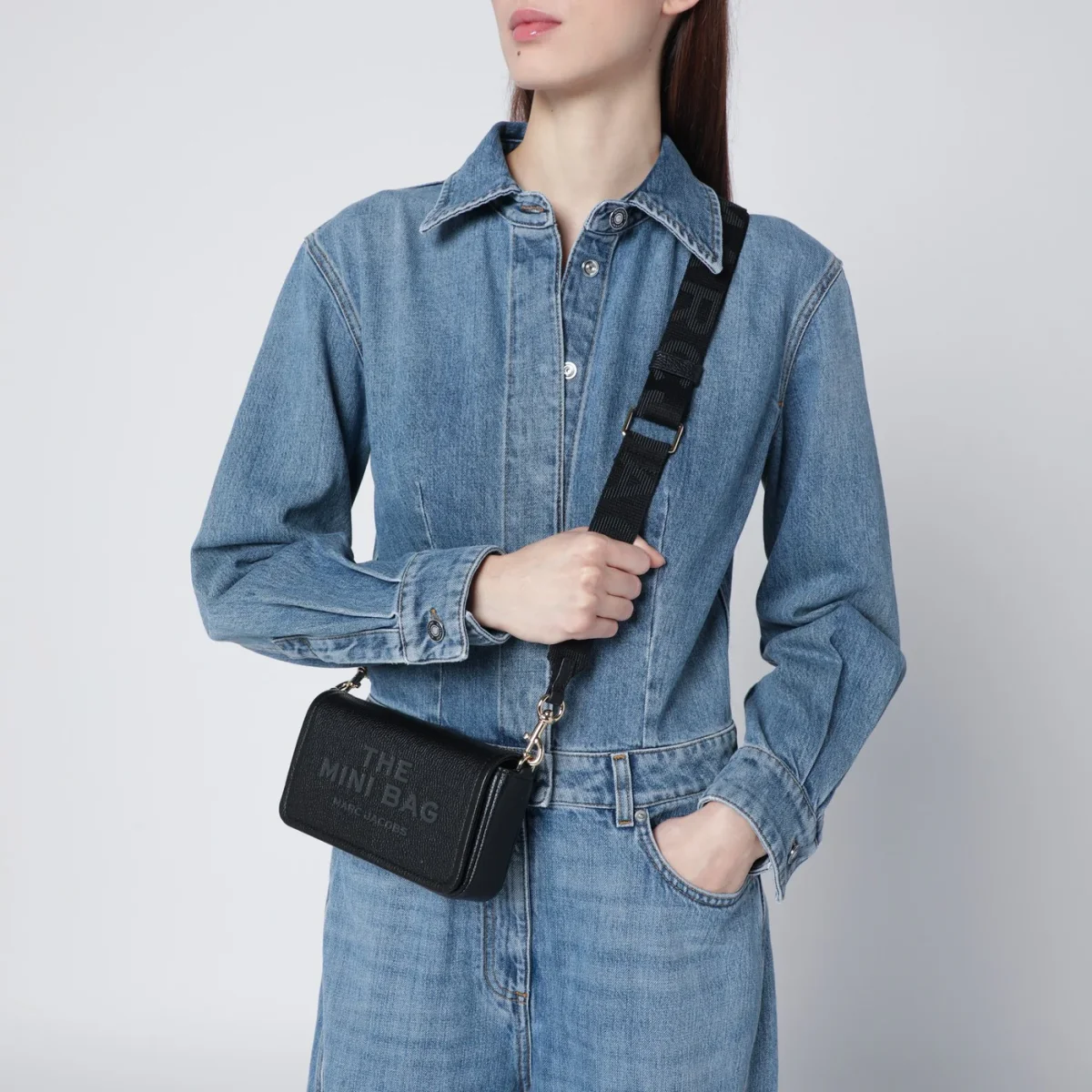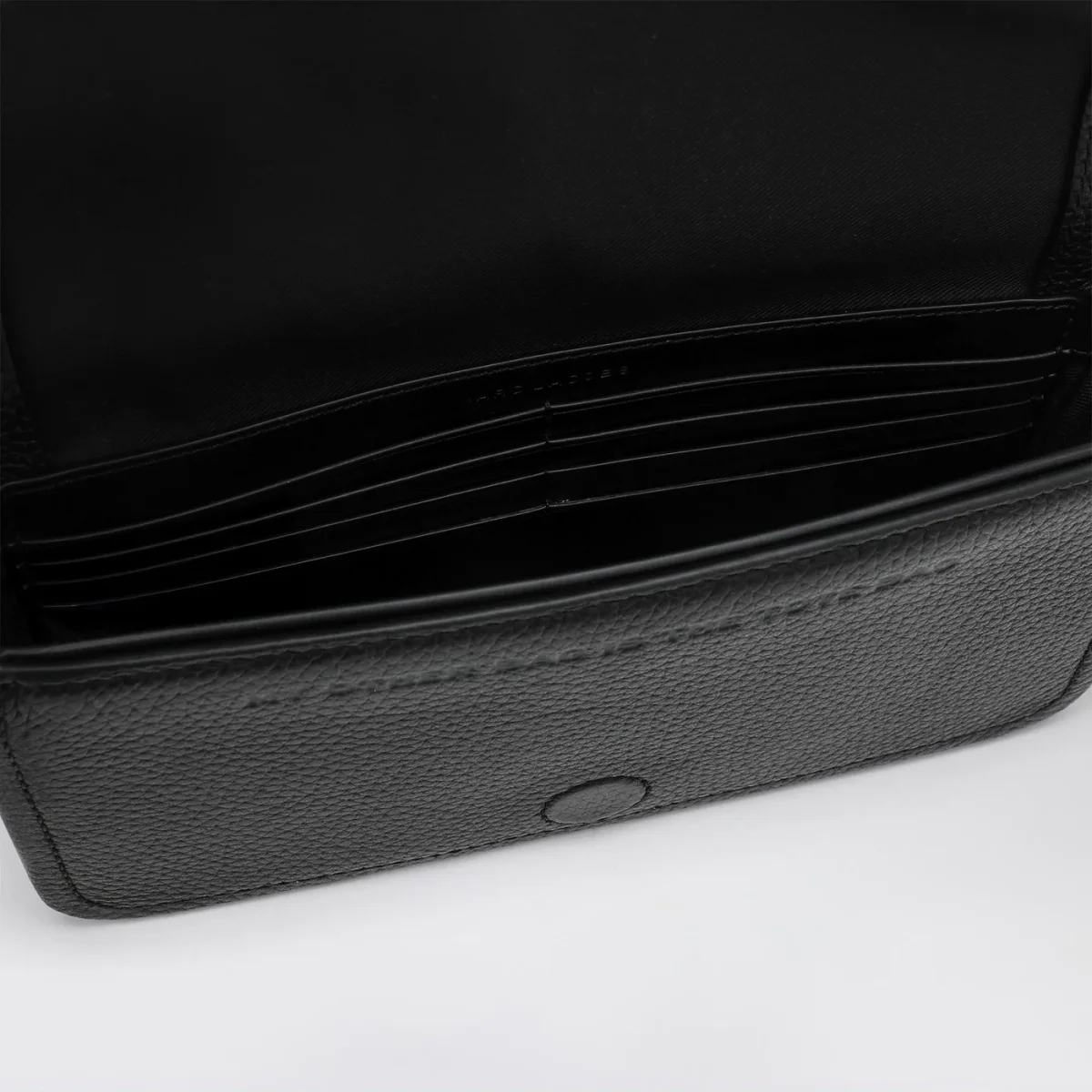 Borsa piccola a tracolla di Marc Jacobs in pelle martellata nera• tracolla regolabile e rimovibile in nastro logato• patta con chiusura magnetica• logo impresso sul davanti•otto slot per carte di credito all’interno
