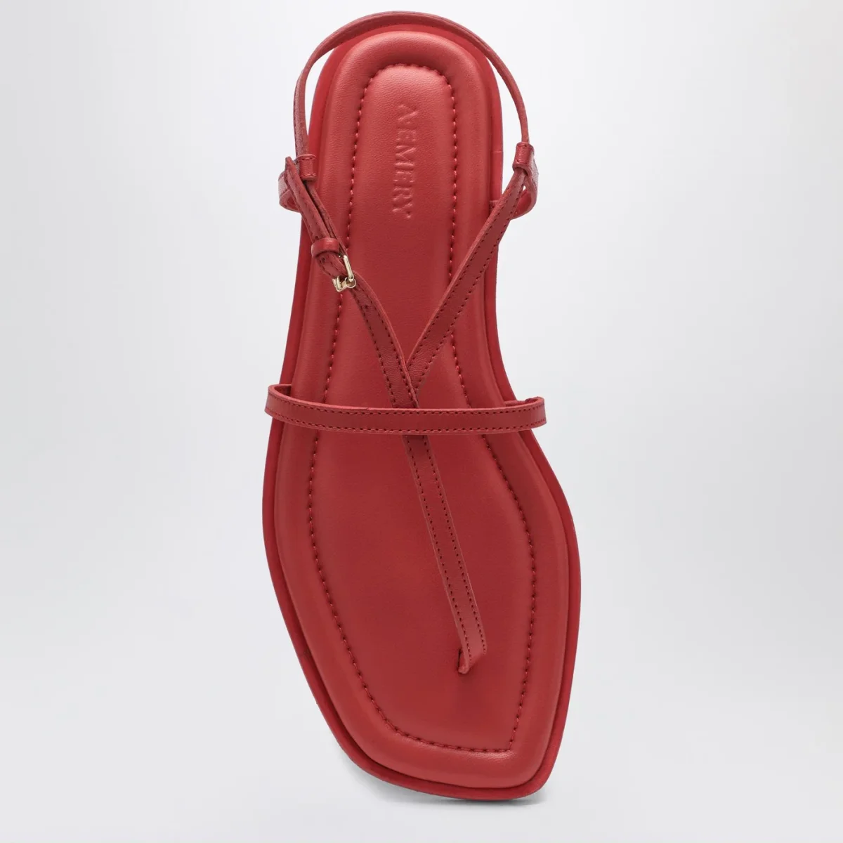 Sandali infradito di A.Emery in pelle color cherry, caratterizzati da punta squadrata, presa in punta, cinturino con chiusura alla caviglia con fibbia e suola in cuoio.