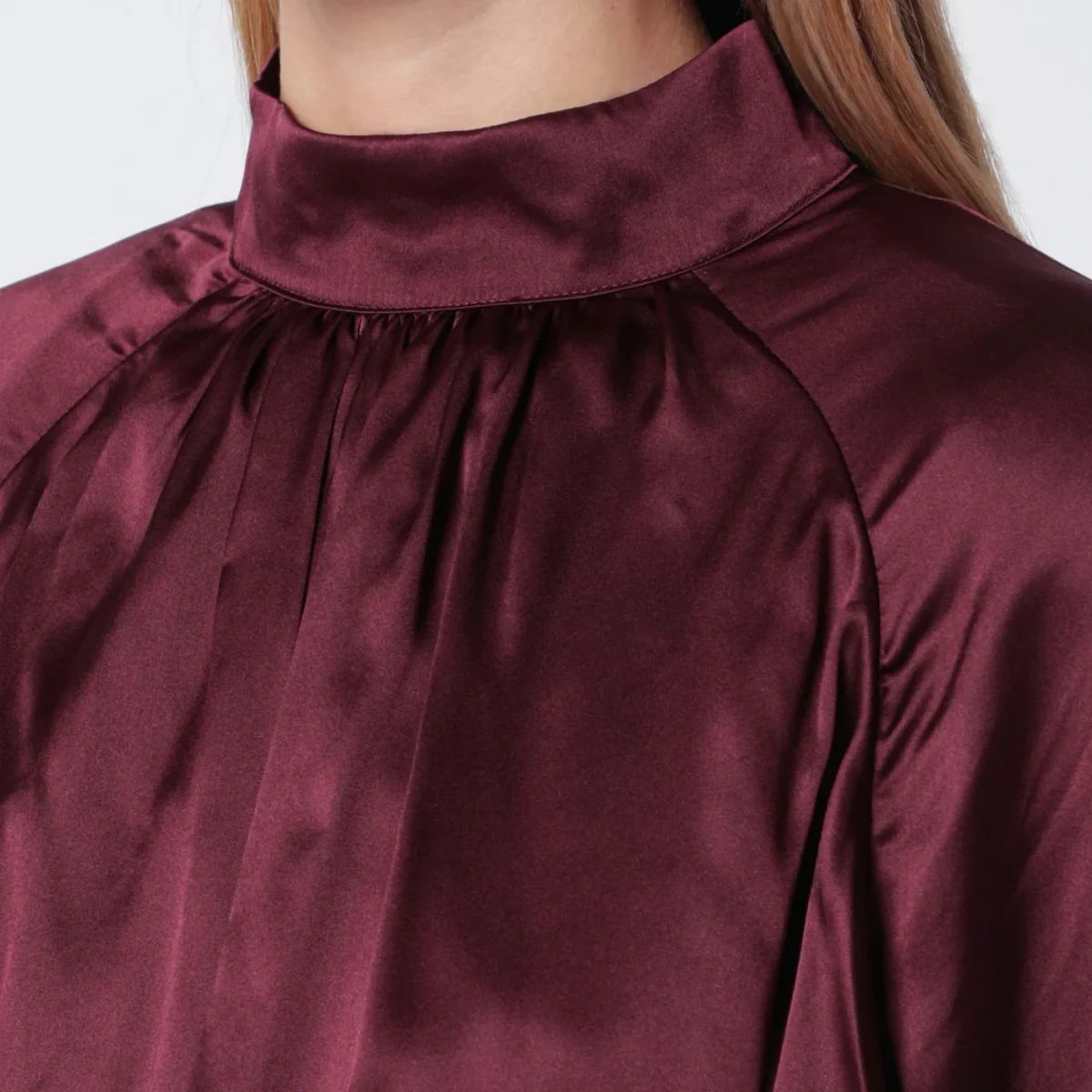 Top arricciato bordeaux in seta