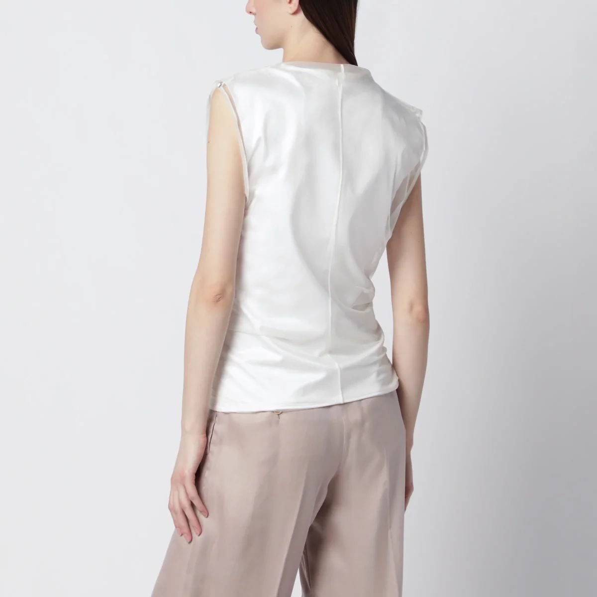 Top bianco a doppio strato in raso e tulle