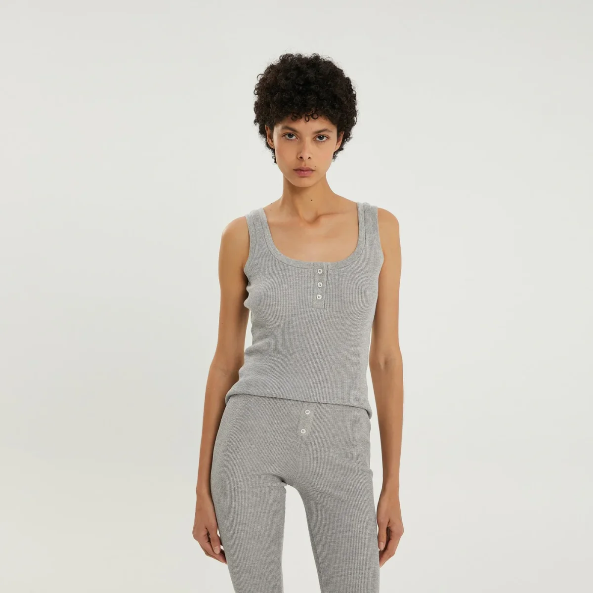 Top in cotone elasticizzato di 1989 Studio con lavorazione a nido d’ape, scollatura rotonda e tre bottoni sul davanti.
