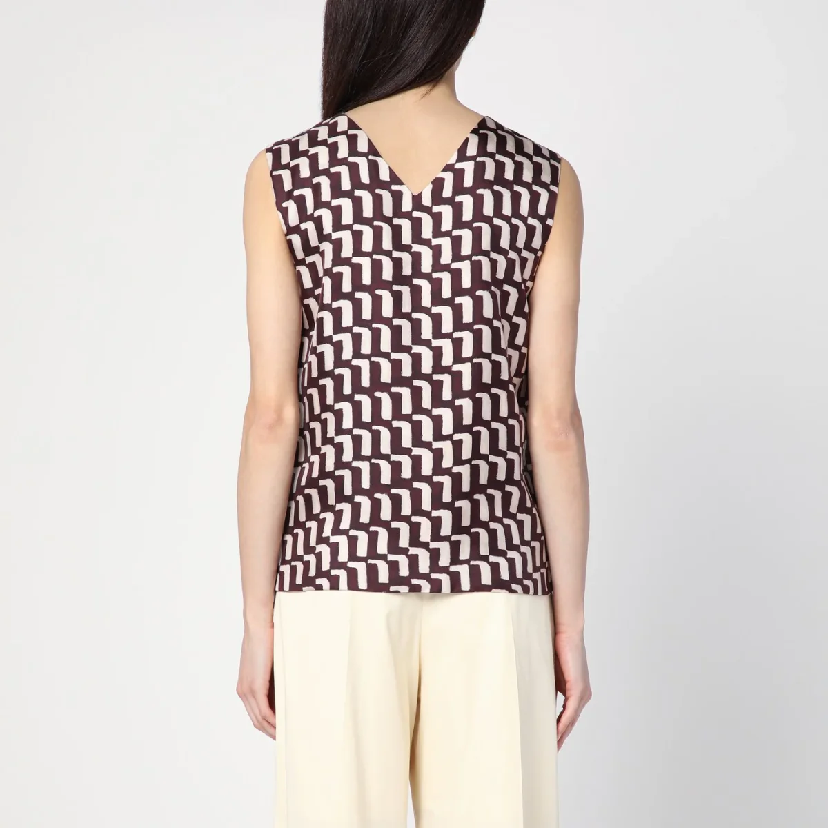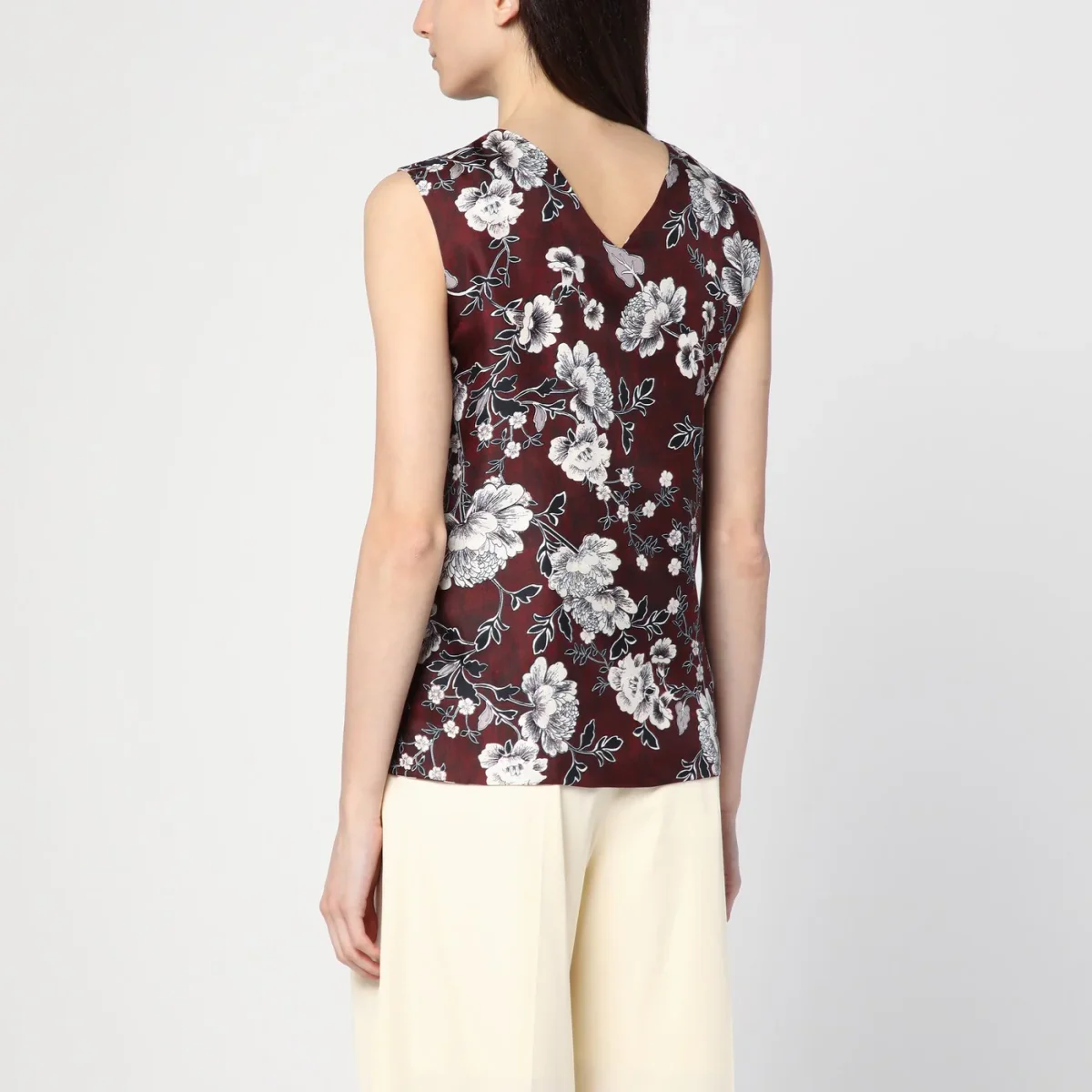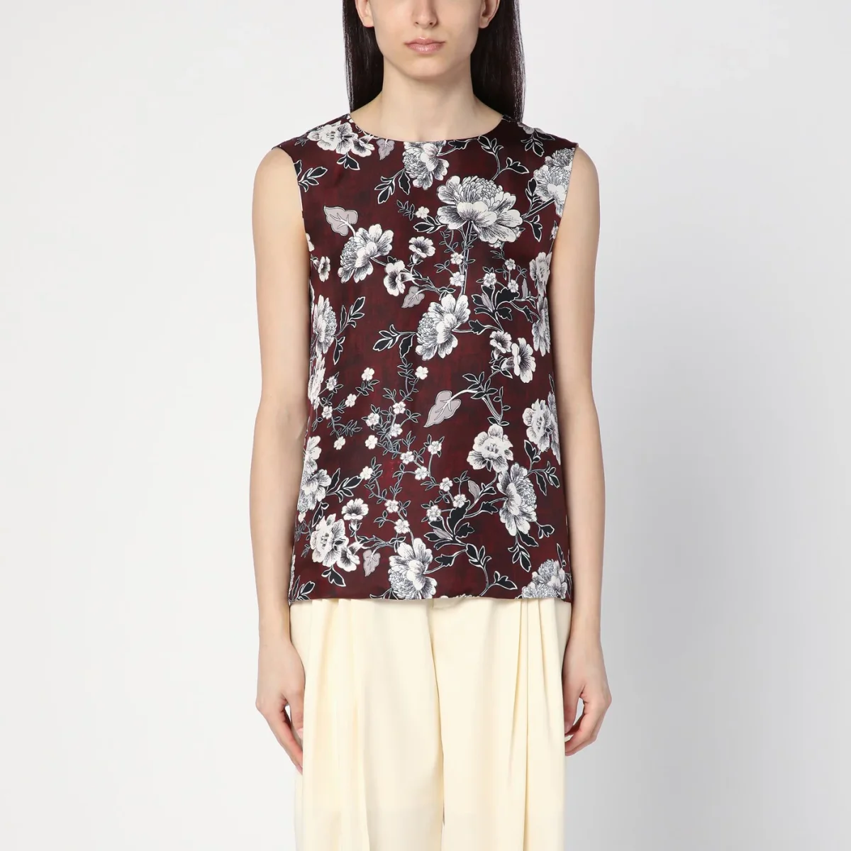 Top canotta reversibile di Max Mara in seta bordeaux con fantasia a contrasto, caratterizzata da scollo a V e orlo dritto.