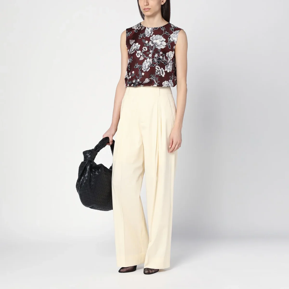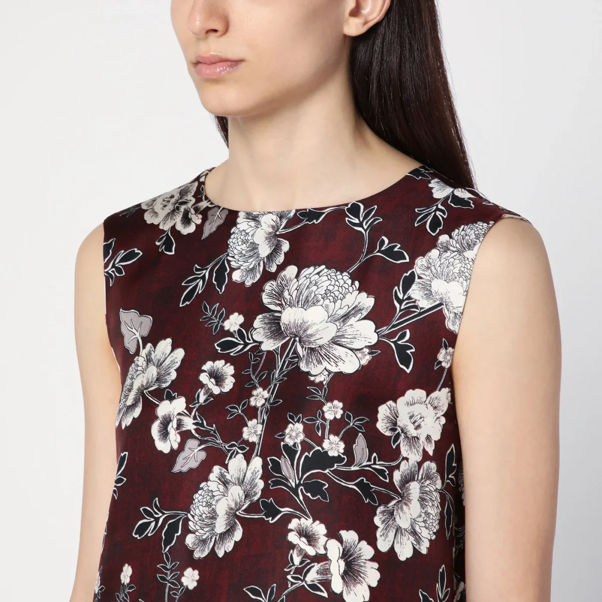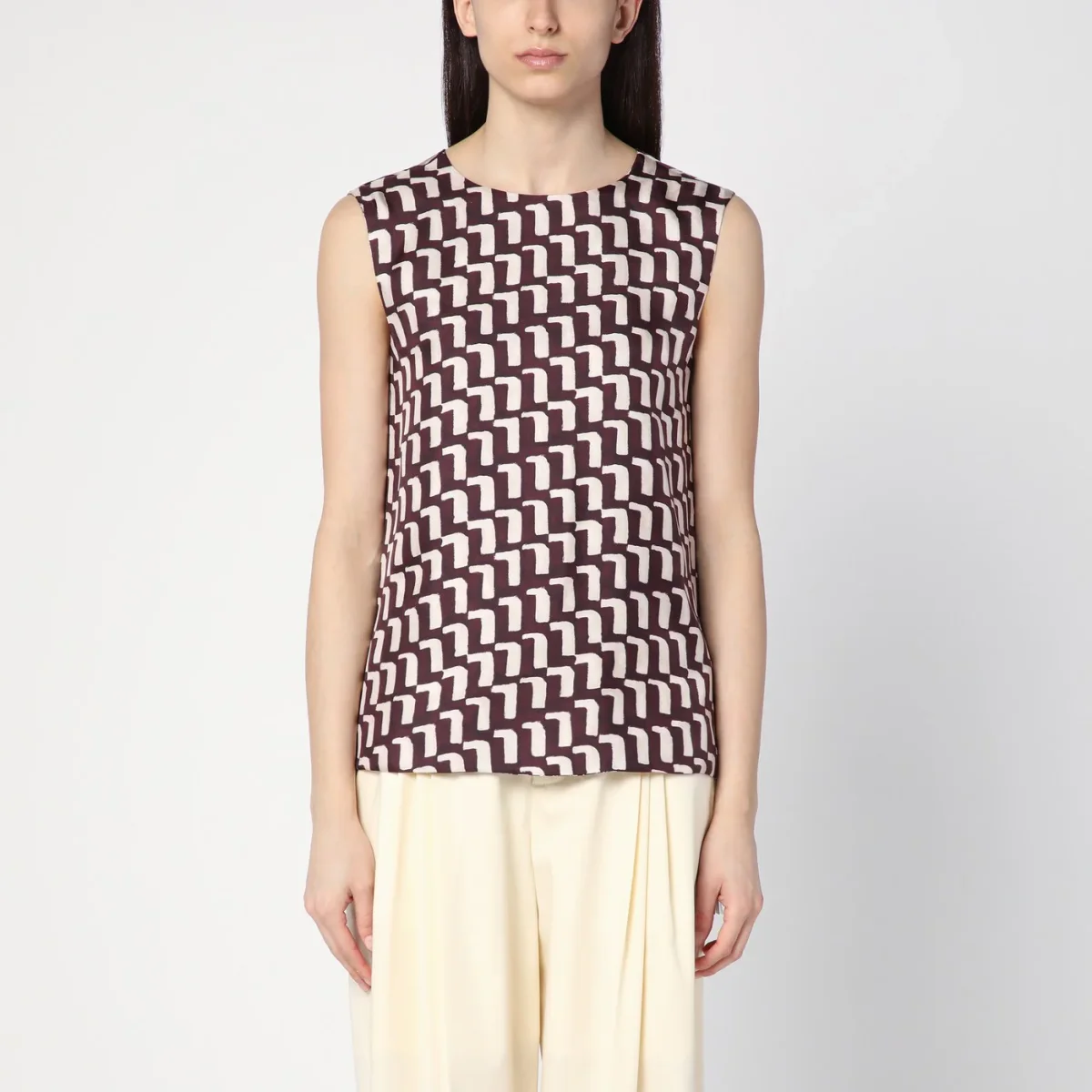 Top canotta reversibile di Max Mara in seta bordeaux con fantasia a contrasto, caratterizzata da scollo a V e orlo dritto.