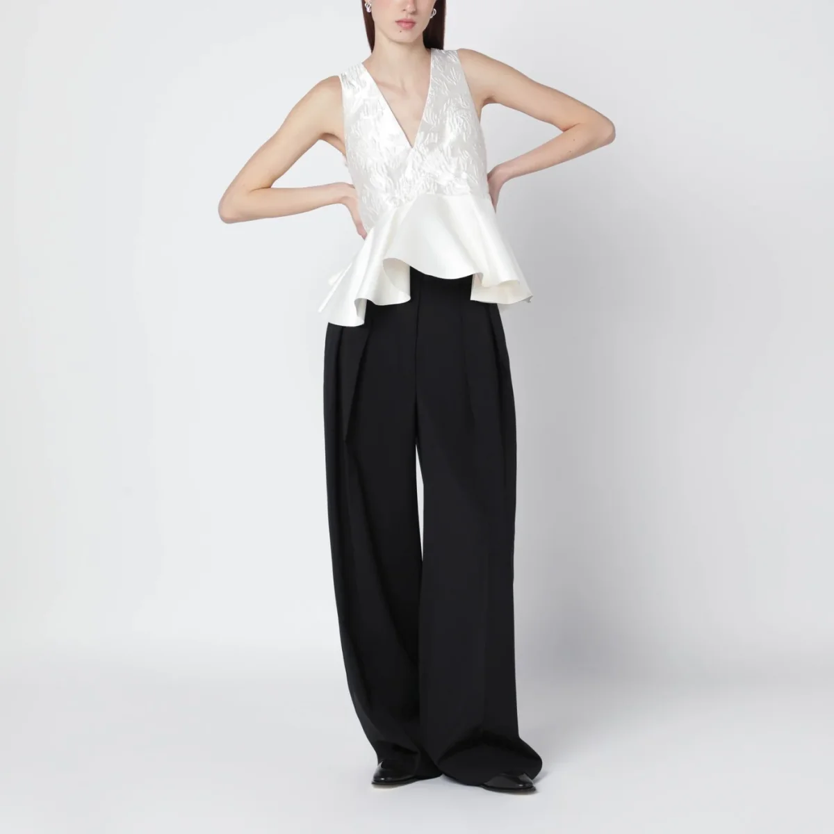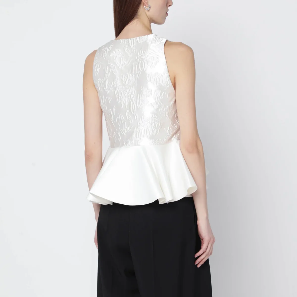 Top con peplo avorio in raso