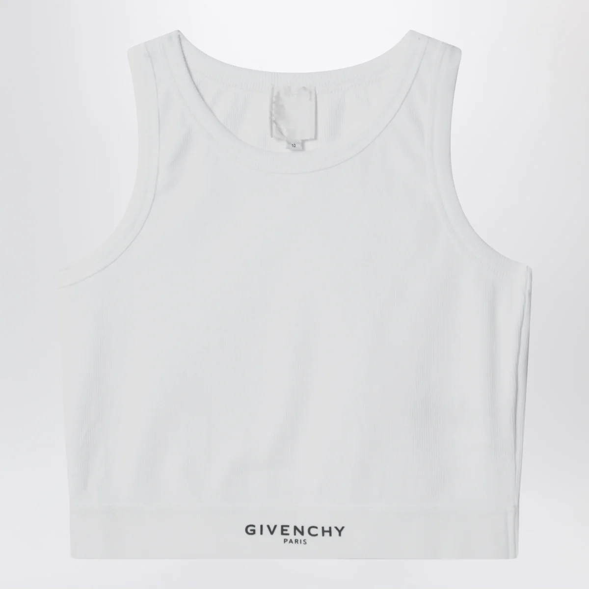 Top girocollo di Givenchy in cotone• Colore: Bianco• Bordo con logo lettering sul davanti a contrasto• Design cropped a costine