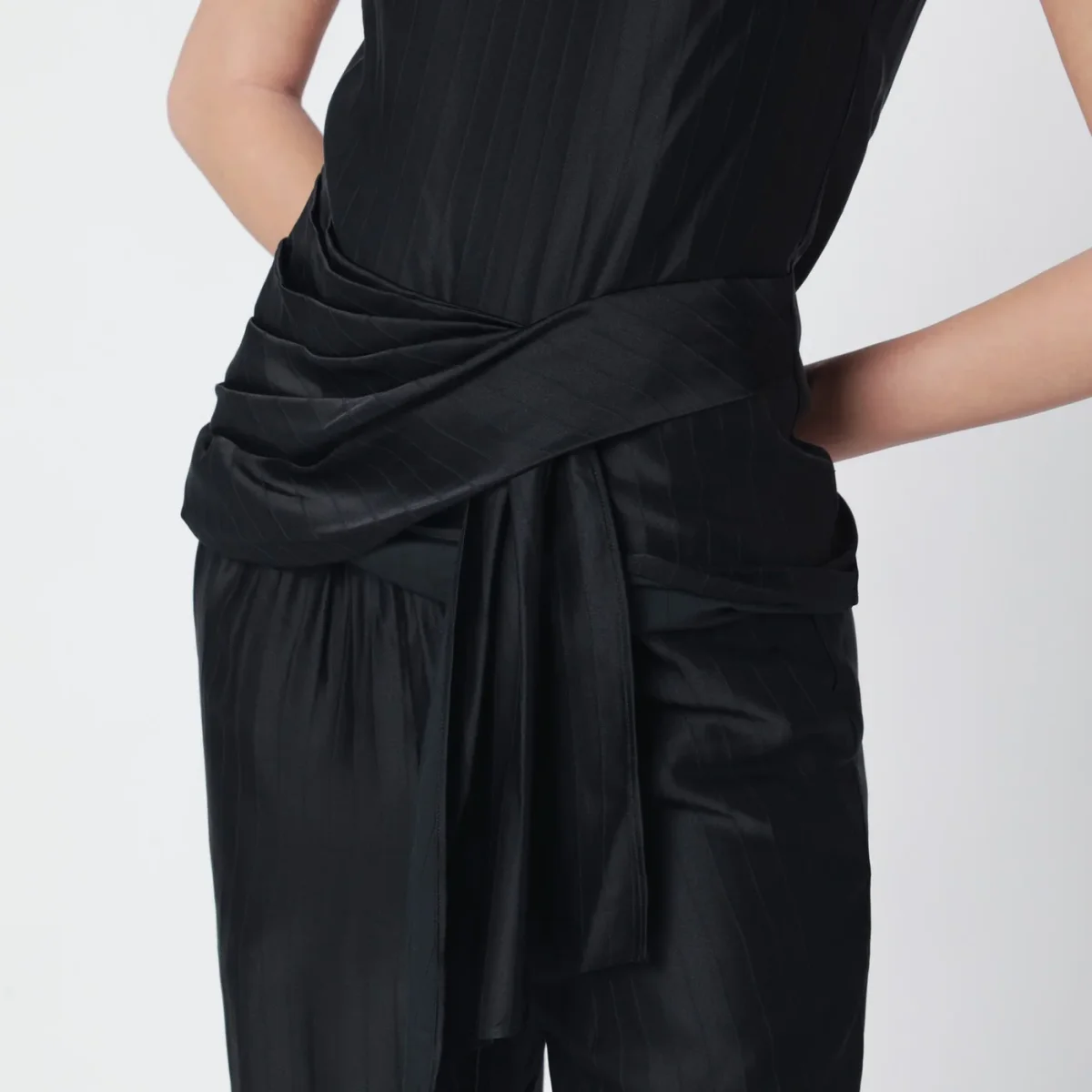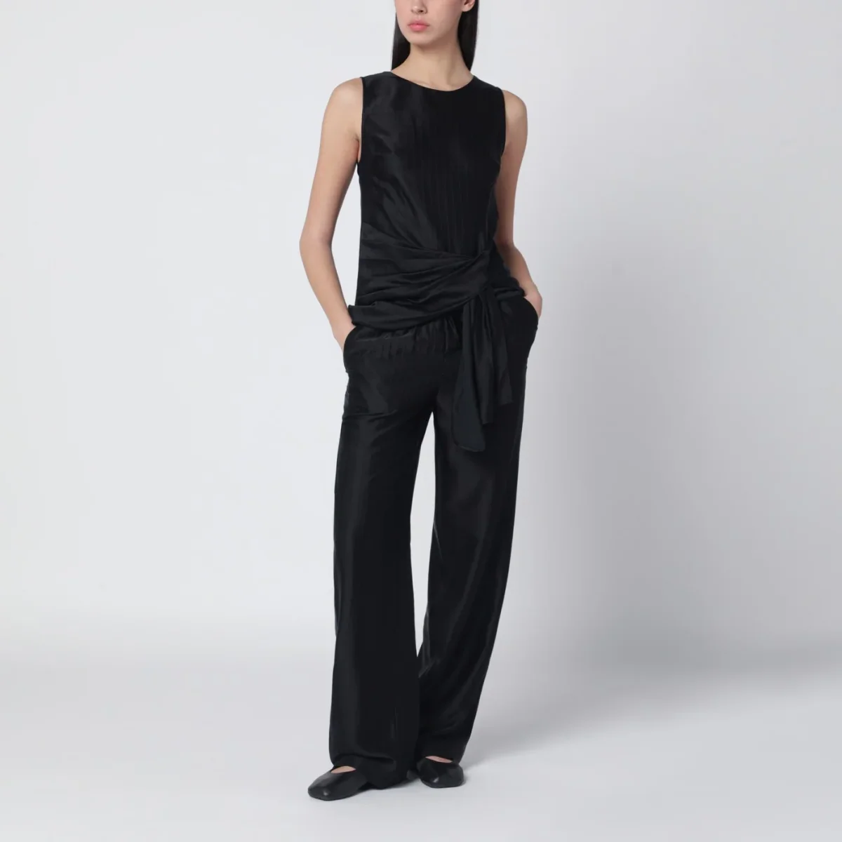 Top girocollo smanicato di LouLou de Saison in misto seta a righe monocromatiche nero• vestibilità lunga e dritta• dettaglio drappeggiato sul davanti per un effetto a strati• chiusura posteriore con zip