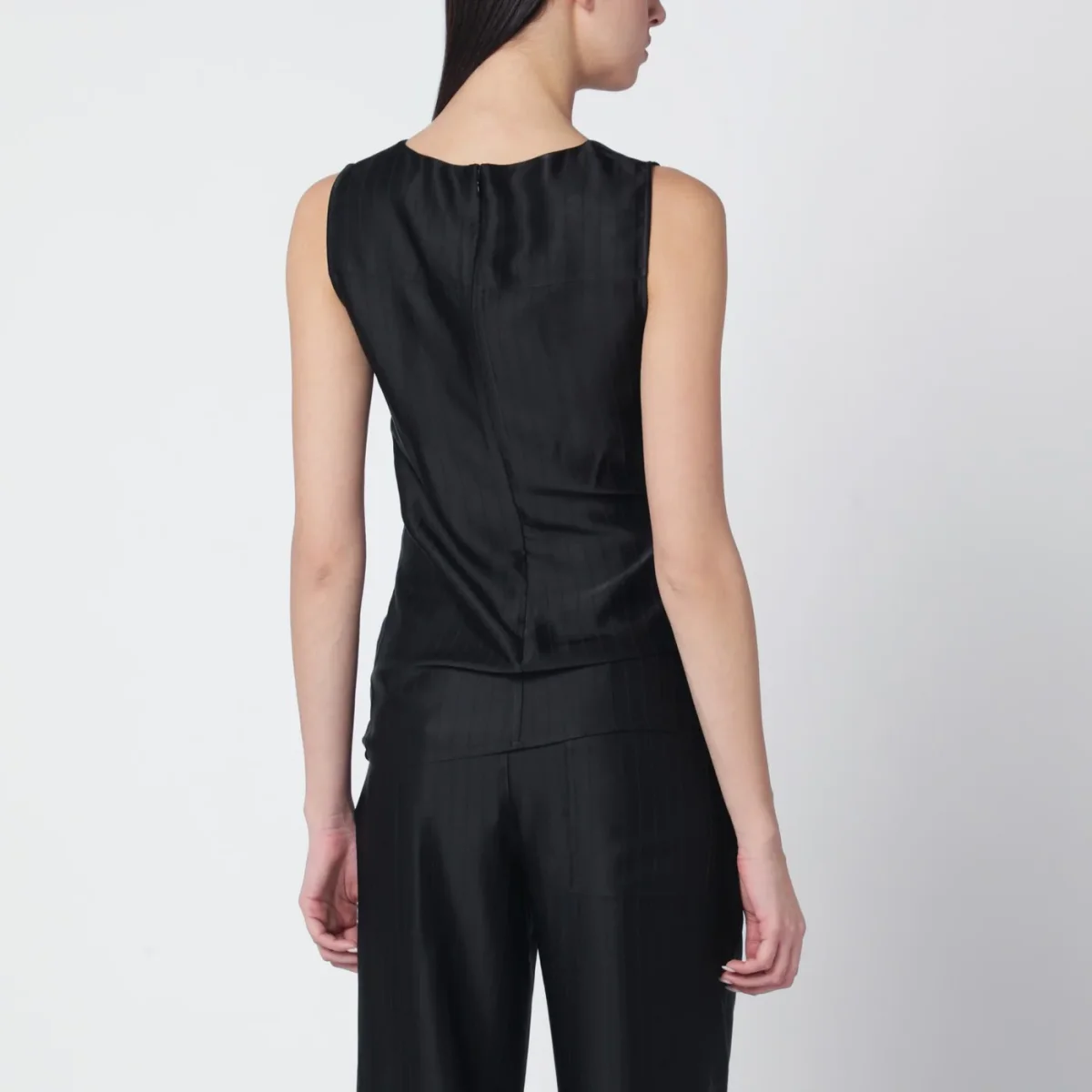 Top girocollo smanicato di LouLou de Saison in misto seta a righe monocromatiche nero
