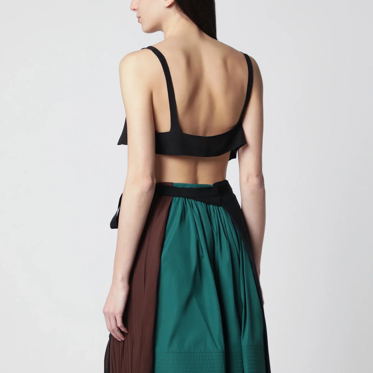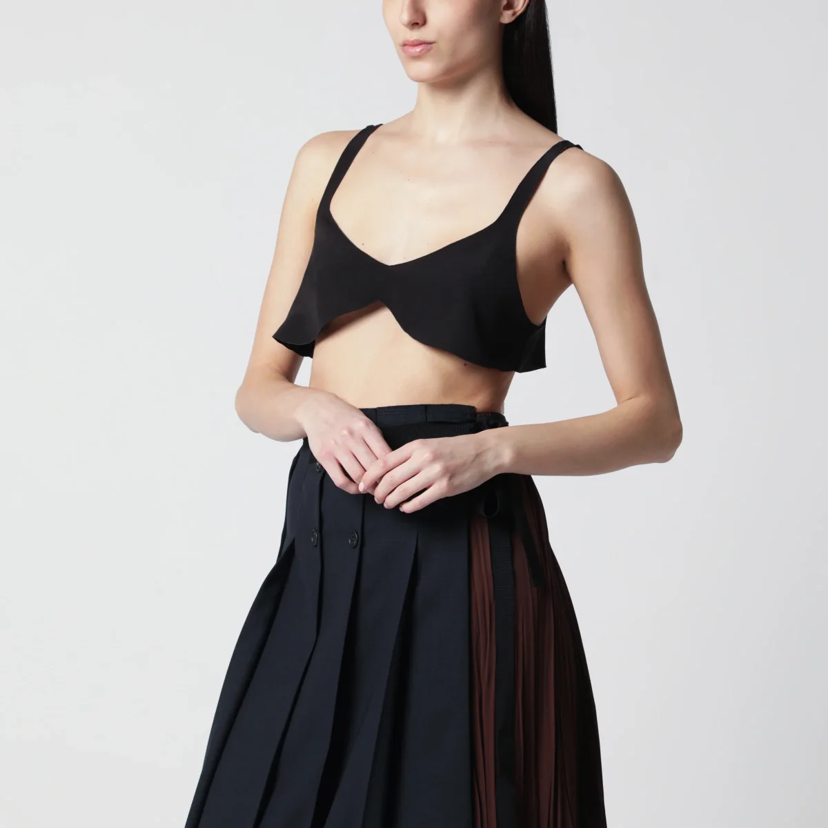 Top in crêpe de chine in seta di Prada• Colore: Nero• Design destrutturato e leggero, pensato per avvolgere il corpo con naturalezza• Silhouette essenziale e delicata per un’eleganza contemporanea• Vestibilità ampia