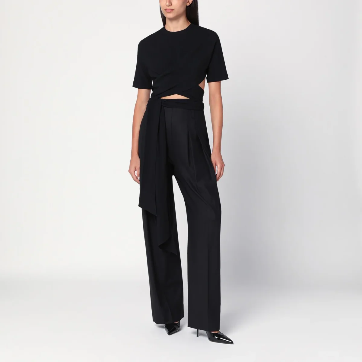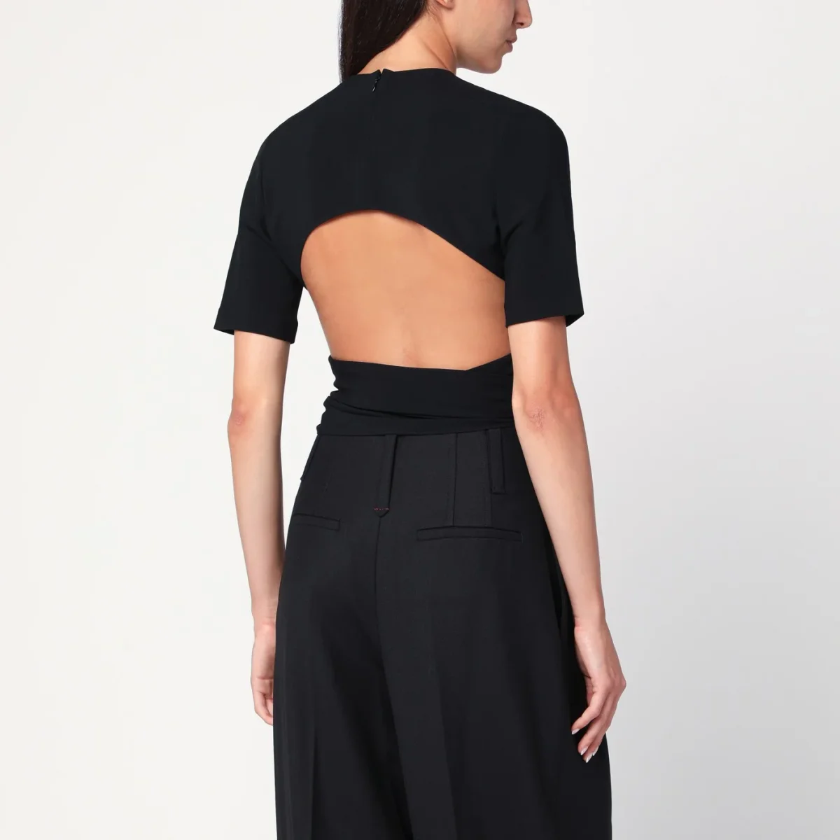 Top girocollo di Alaïa in jersey di viscosa nero, caratterizzato da maniche corte, chiusura posteriore con zip e design incrociato sul retro con schiena scoperta.