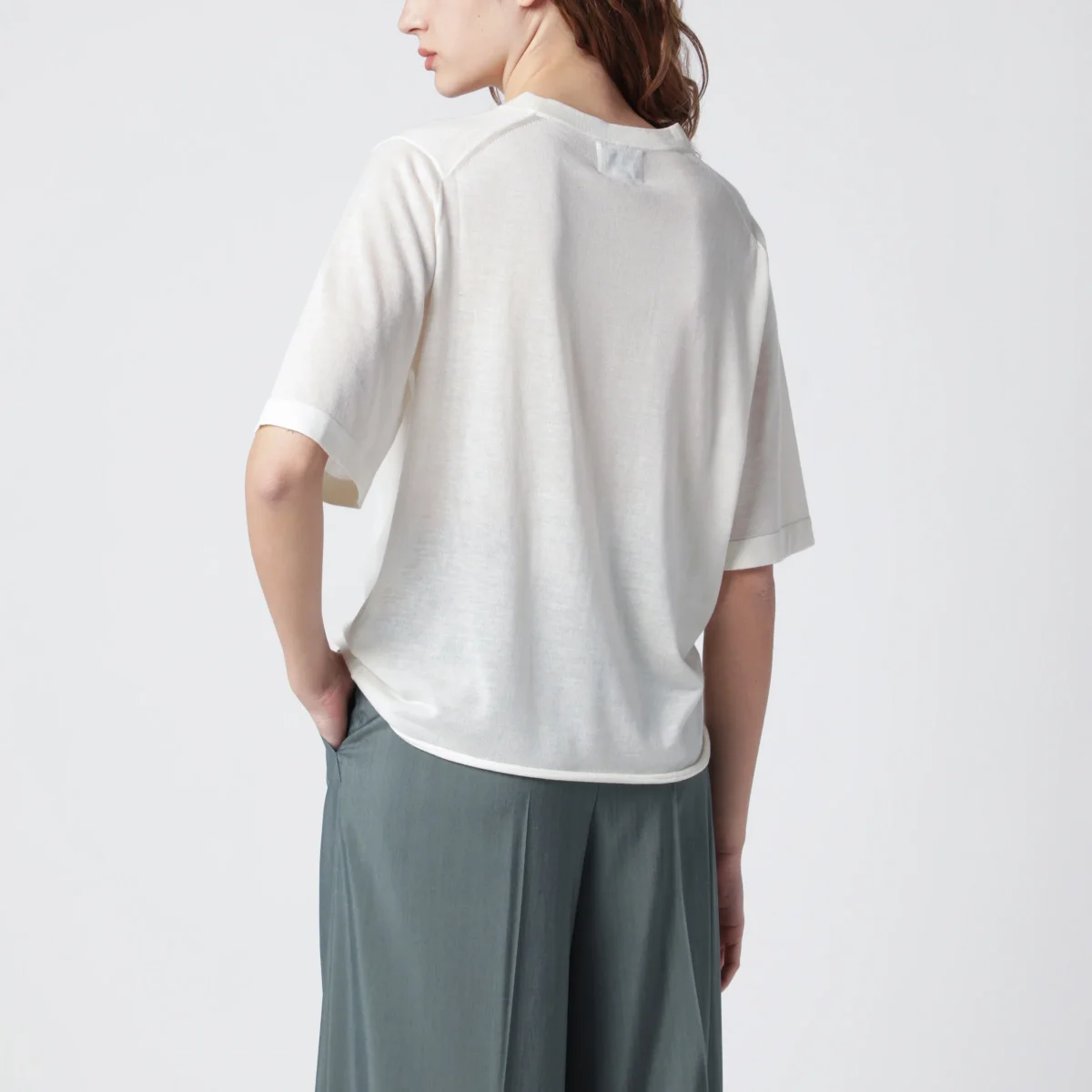 Top Nala in cashmere a maglia fine fluida• Colore: Avorio• Vestibilità dritta• Maniche corte• Scollo rotondo