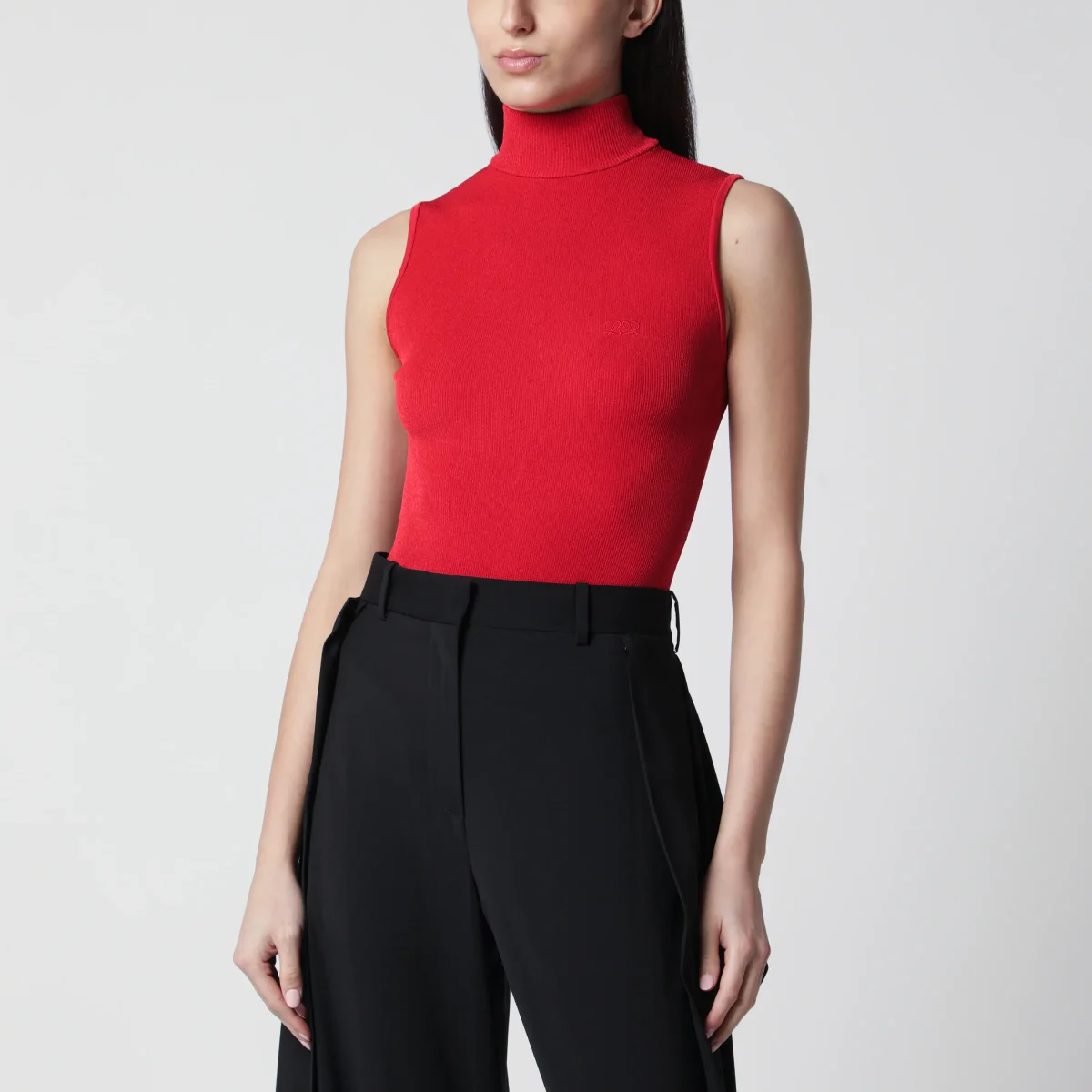 Top senza maniche in misto viscosa a coste di LOEWE• Colore: Rosso• Maglia leggera in viscosa stretch a coste• Vestibilità slim e lunghezza standard• Collo alto• Ricamo Double L sul petto