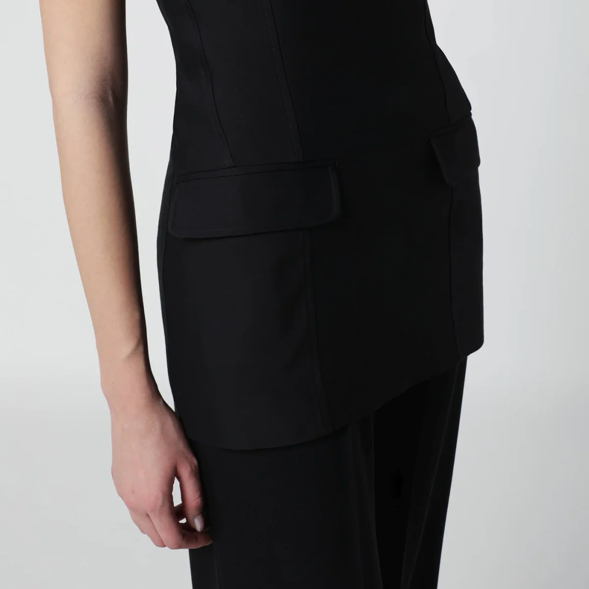 Top smanicato di TOTEME in lana e seta nero• una silhouette lunga e aderente• chiusura con zip sul retro