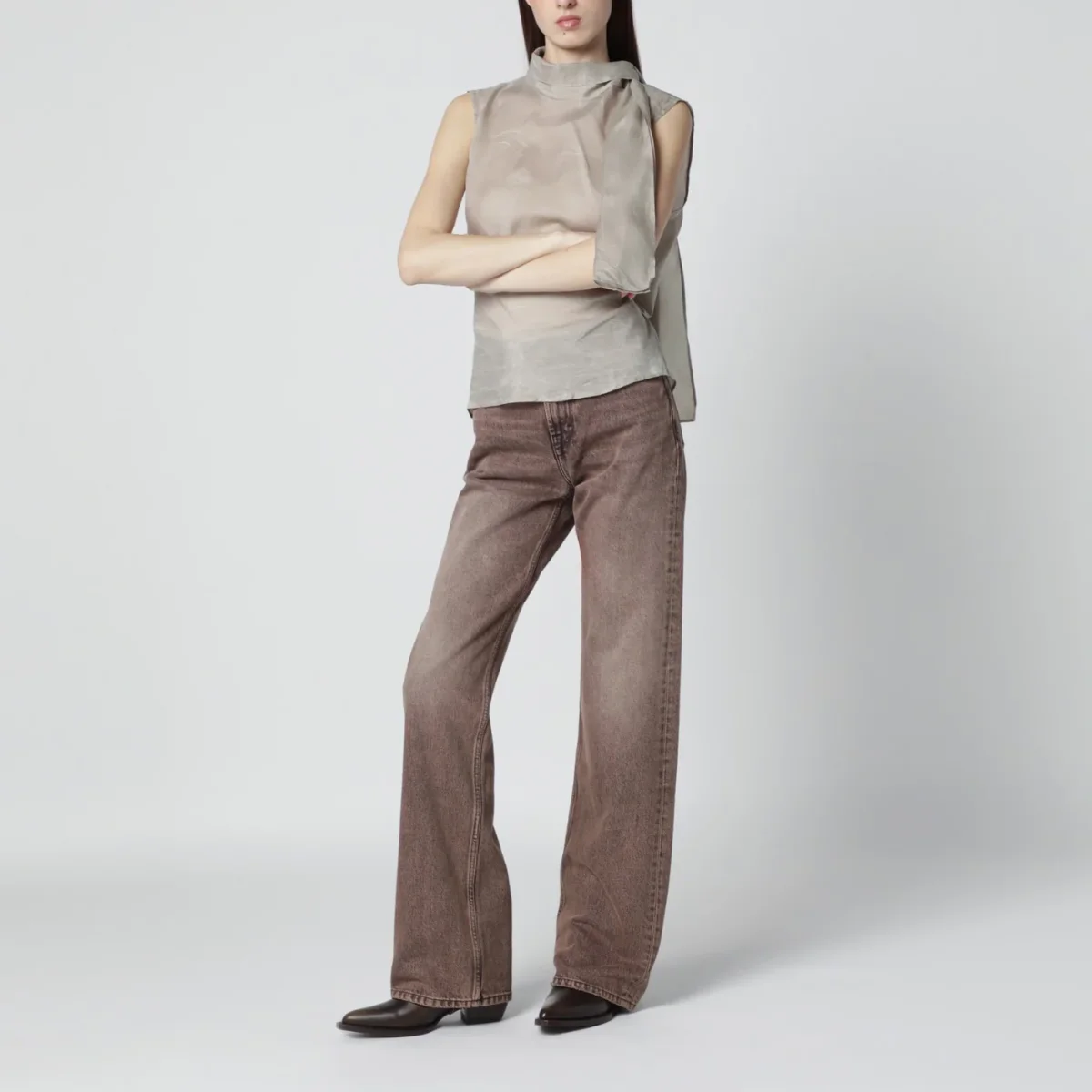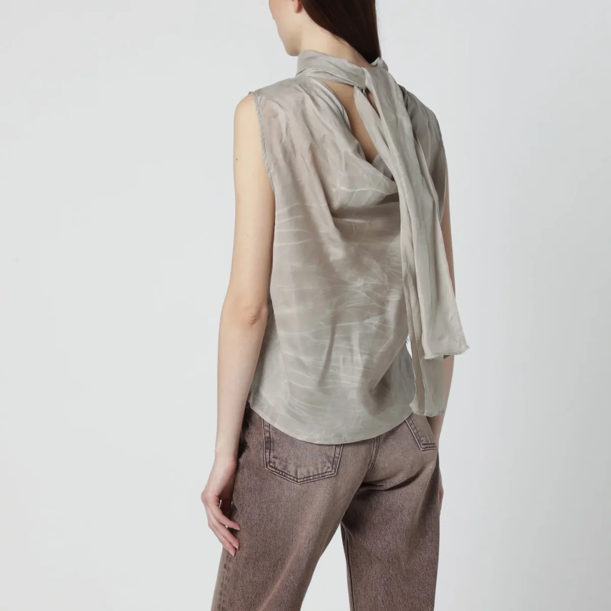 Top smanicato di Our Legacy in cupro cerato grigio• Una silhouette regolabile che può passare da rilassata a attillata grazie ai lacci interni• Scialle lavallière sul collo e da un pannello posteriore drappeggiato