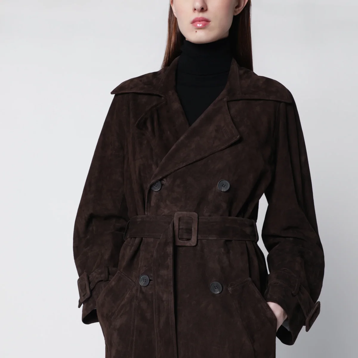 Trench doppiopetto di SWD by S.w.o.r.d. in pelle scamosciata